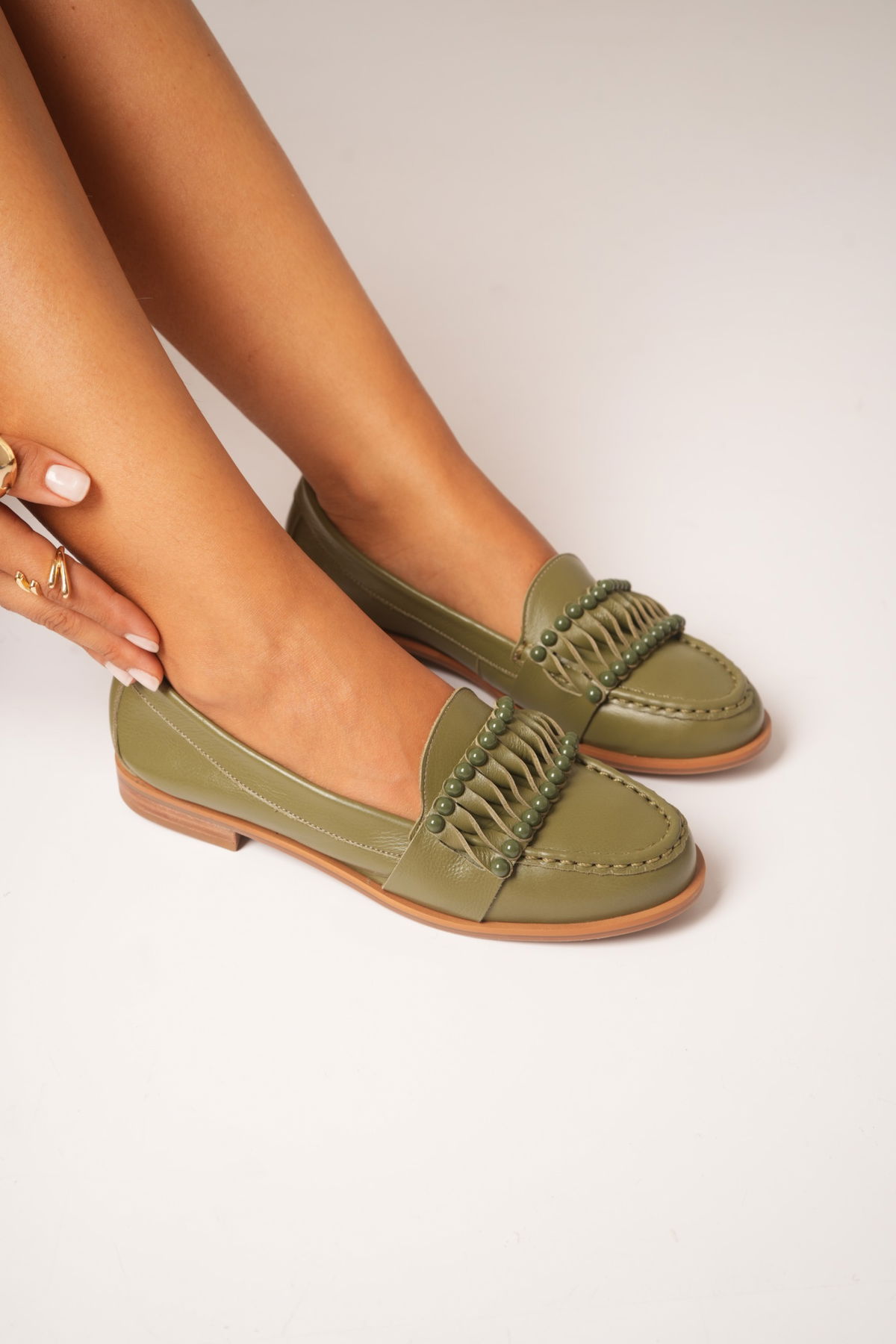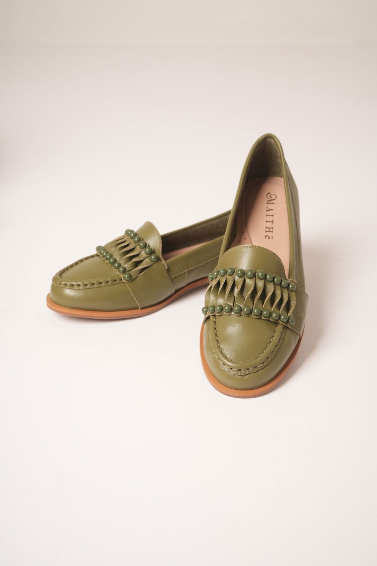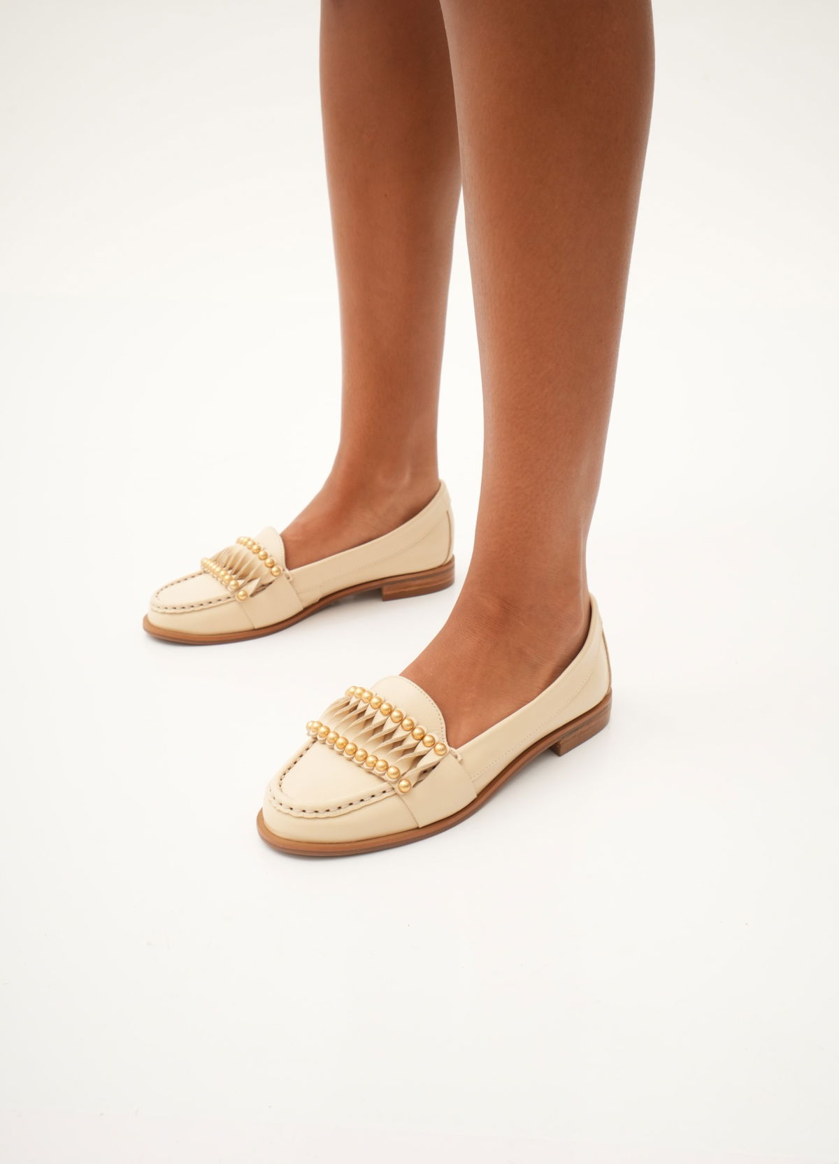 Mocasines Canela Material: Cuero Horma: Normal Altura de talon 1.7cm Detalle: Perlas parte delantera Disponible 36 al 40
