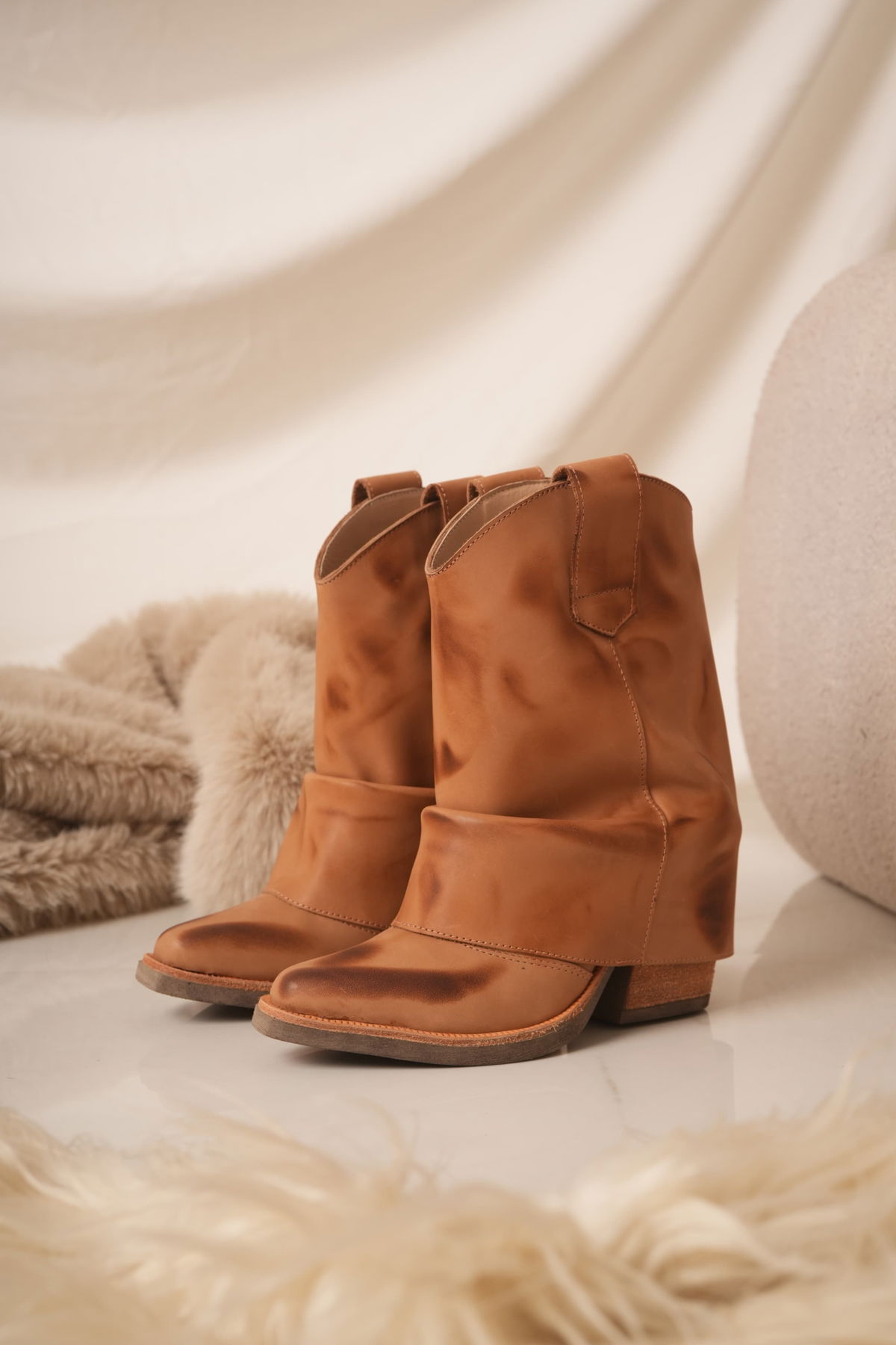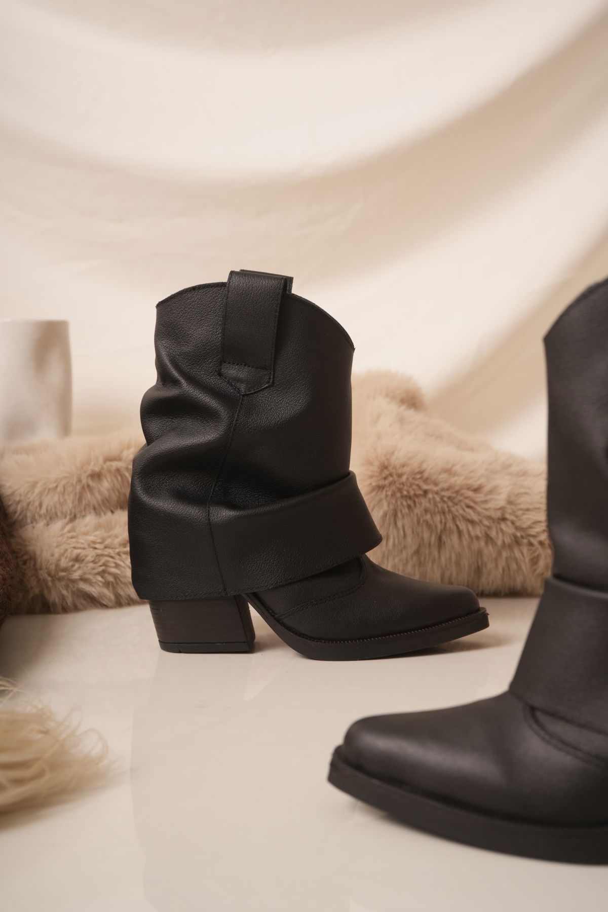 Texanas de cuero Corrugadas con un taquito de 5 cm en color negro y suela