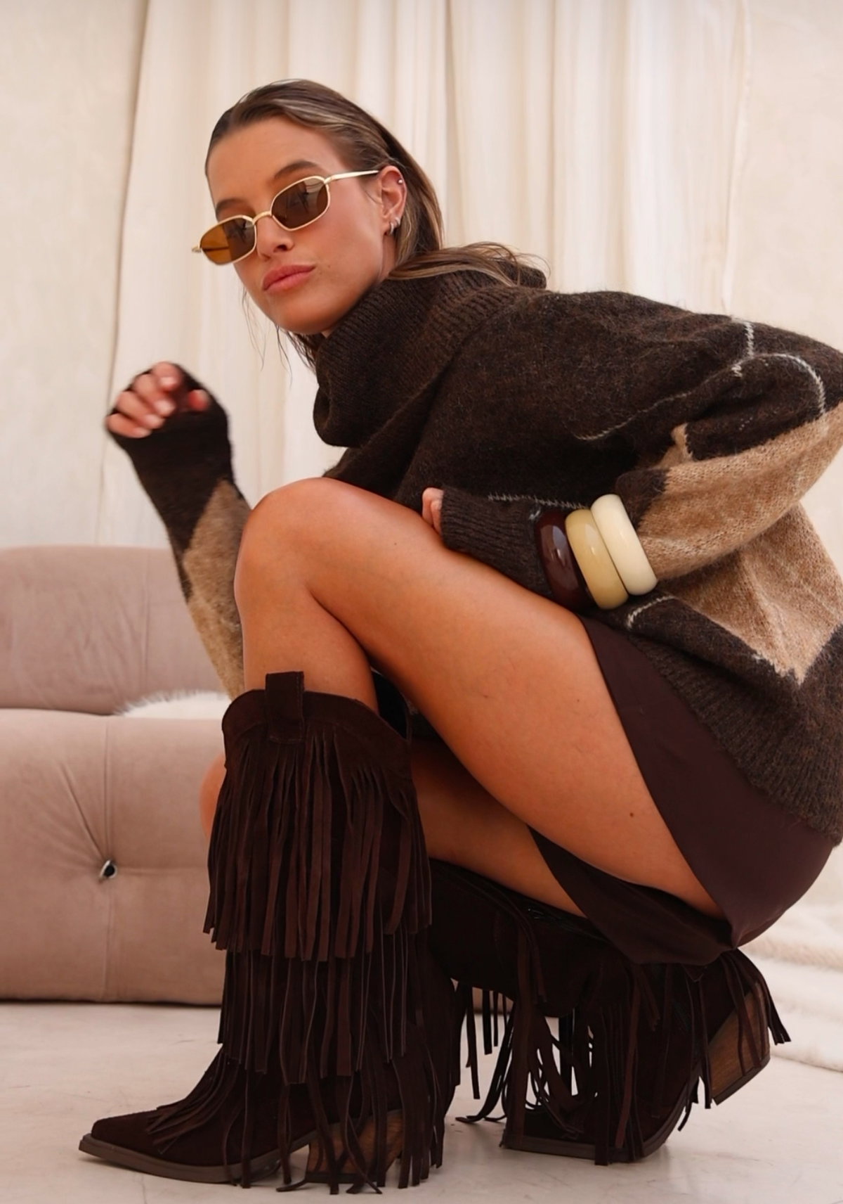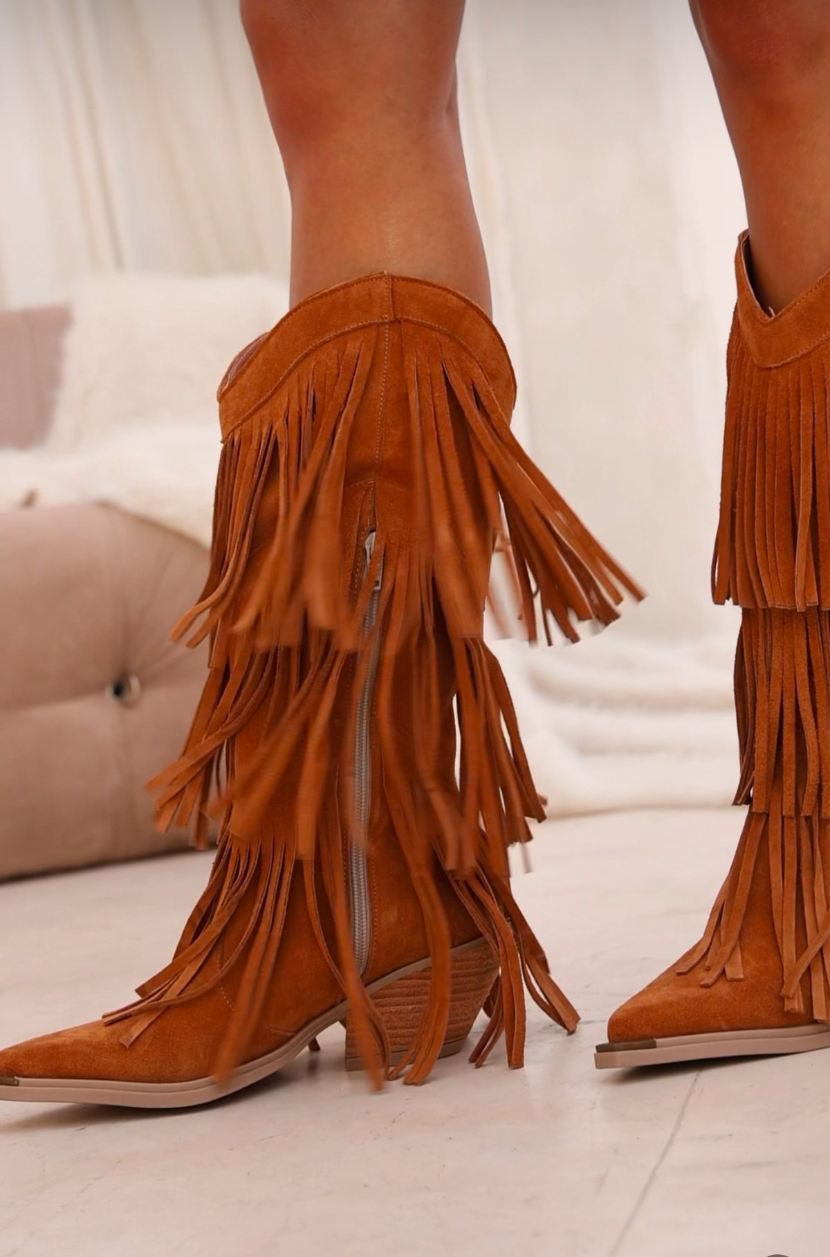 Texanas de Cuero gamuzado del 35 al 40 con flecos