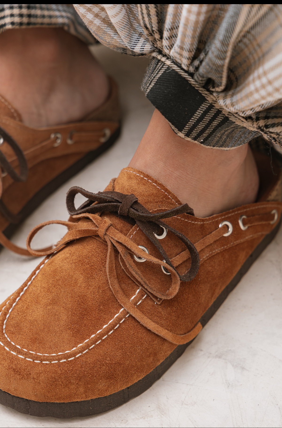 Diseñados para acompañarte todos los días con estilo y comodidad. Estos mocasines en cuero gamuzado color habano combinan un calce súper confortable con un diseño clásico que nunca pasa de moda. Su detalle de cordones y costuras a la vista le aportan un toque canchero y versátil, ideal para looks relajados o más armados.