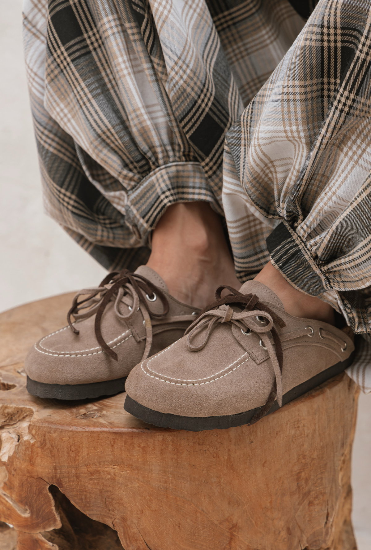 Mocasines de cuero gamuzado con cordones
