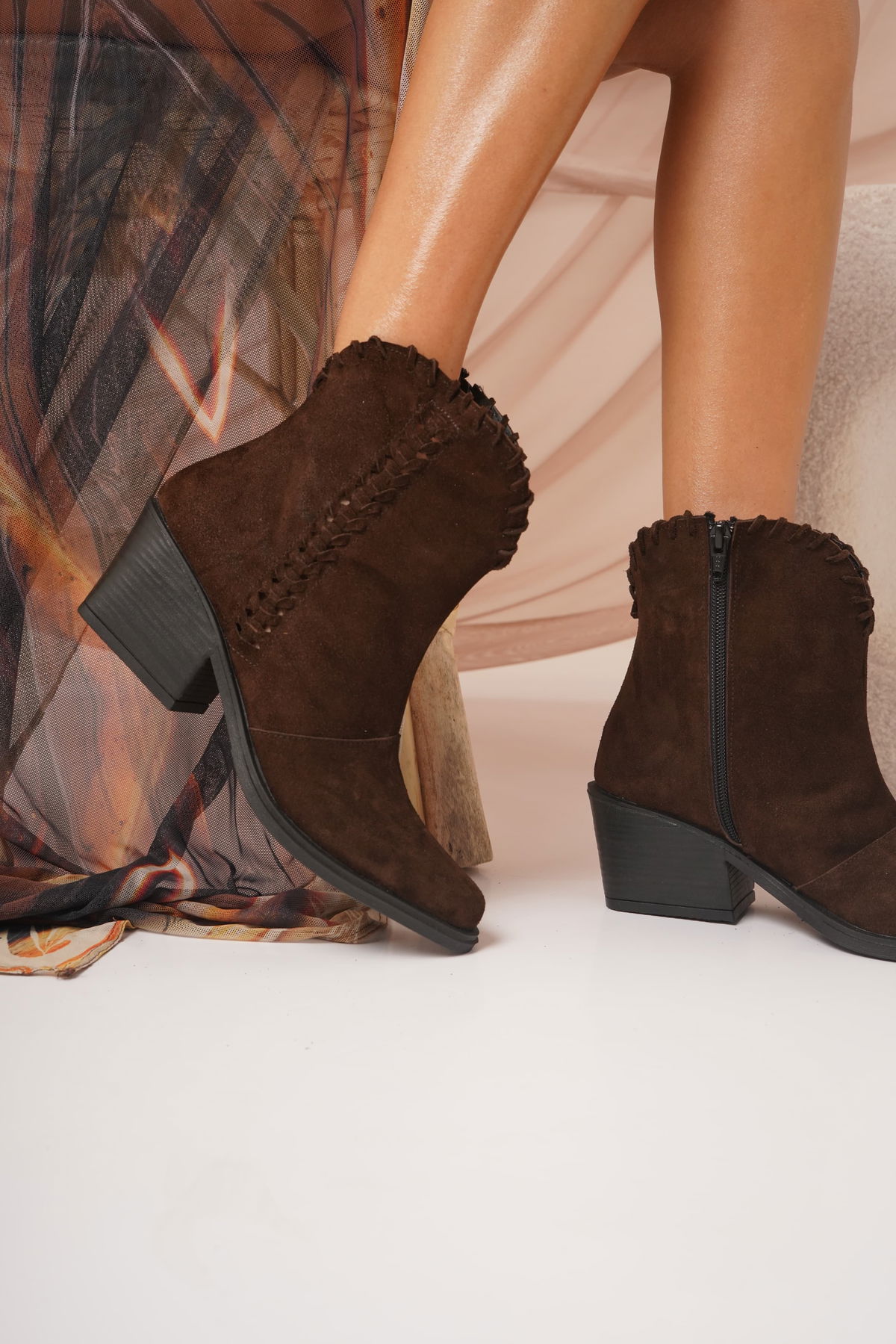 -Cuero vauno gamuzon - altura de taco 6cm - detalles de trenzados y cierre interno - altura de caña 17cm - detalles de caña en corte v - -Colores: negro liso - chocolate - coco - Talles del 36 al 40
