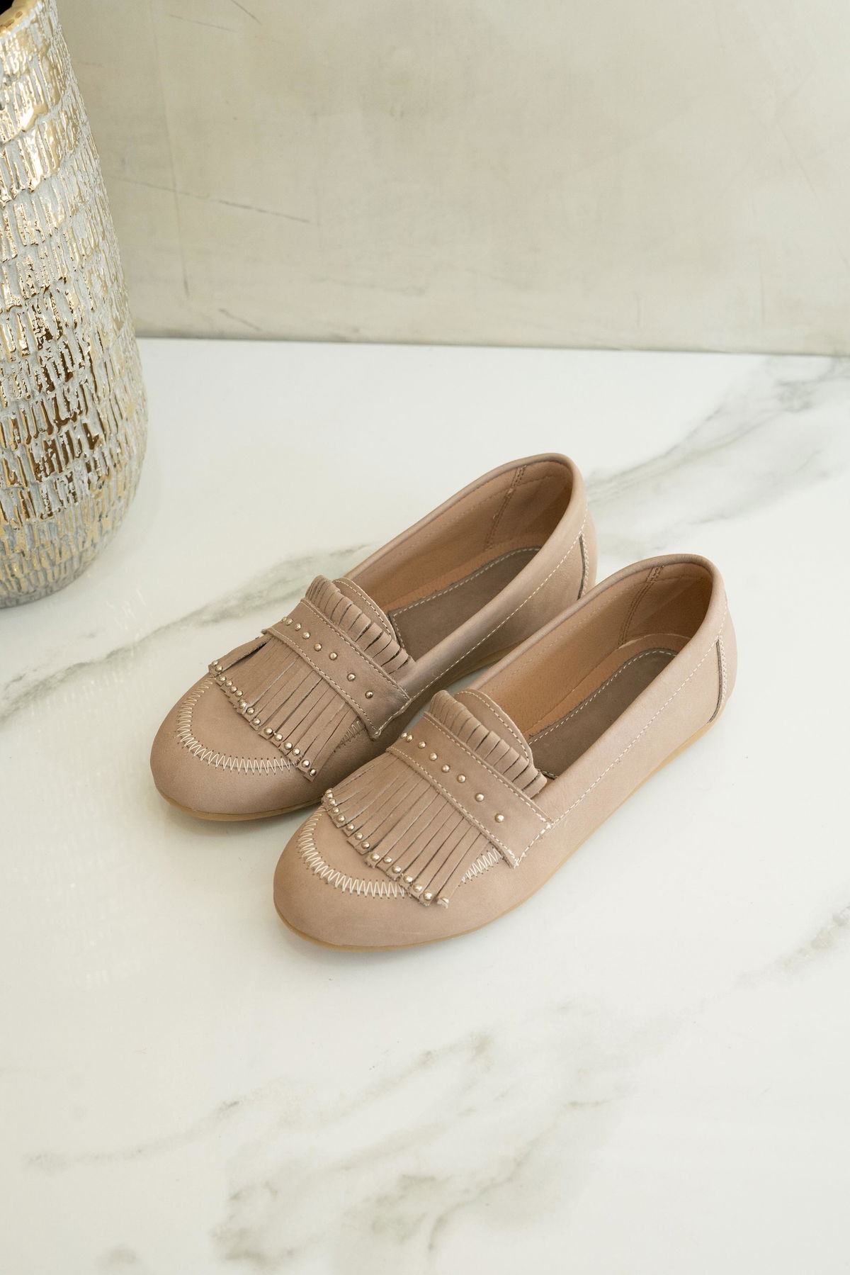 El clásico que transforma cualquier look. Nuestros mocasines combinan diseño atemporal con detalles que marcan tendencia: flecos delicados, tachas metálicas y terminaciones artesanales que elevan cada paso.