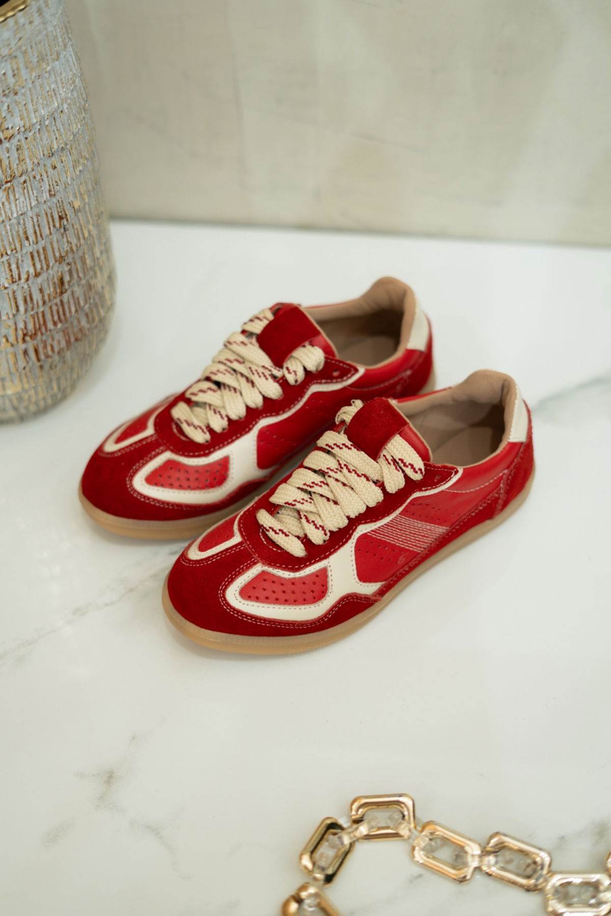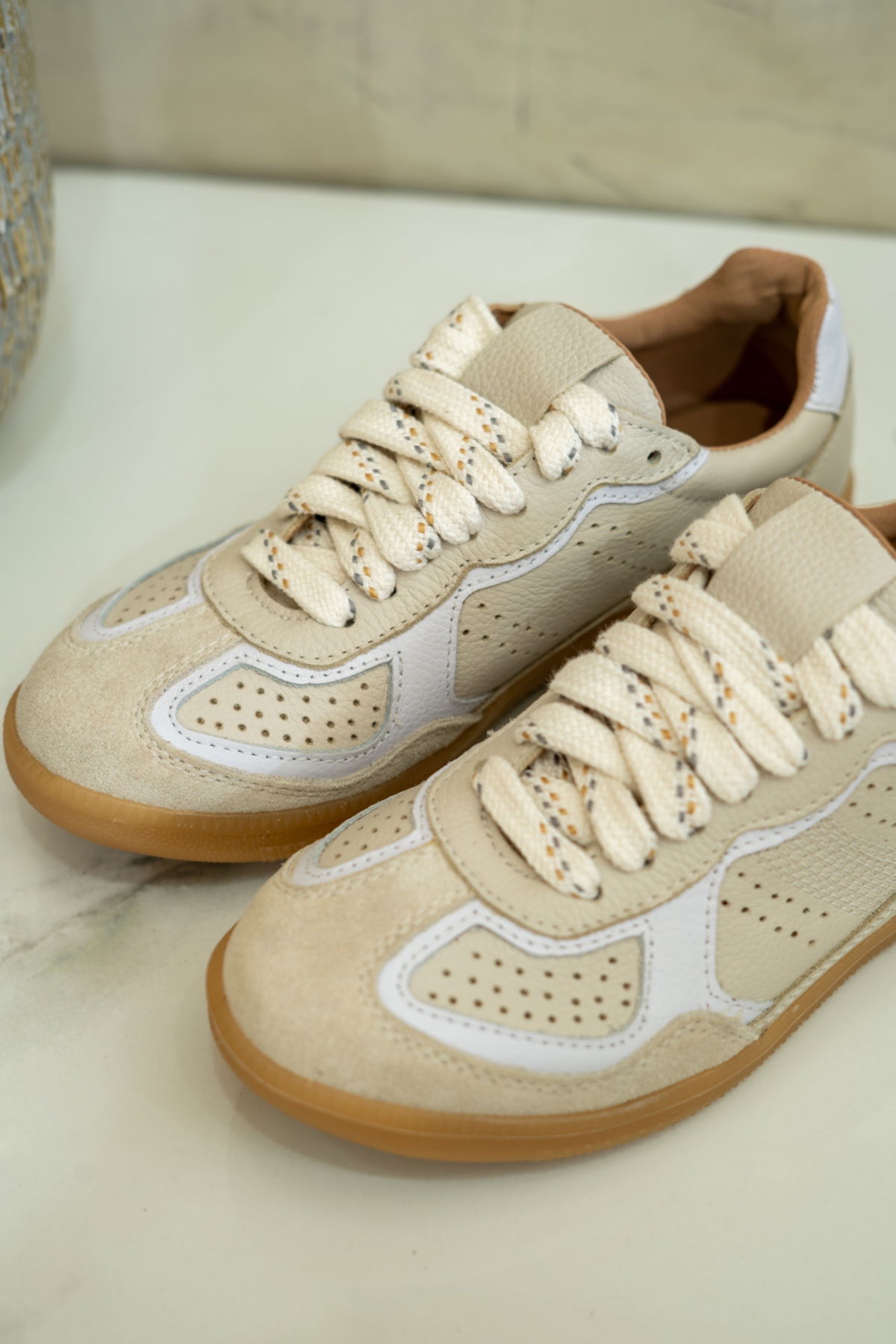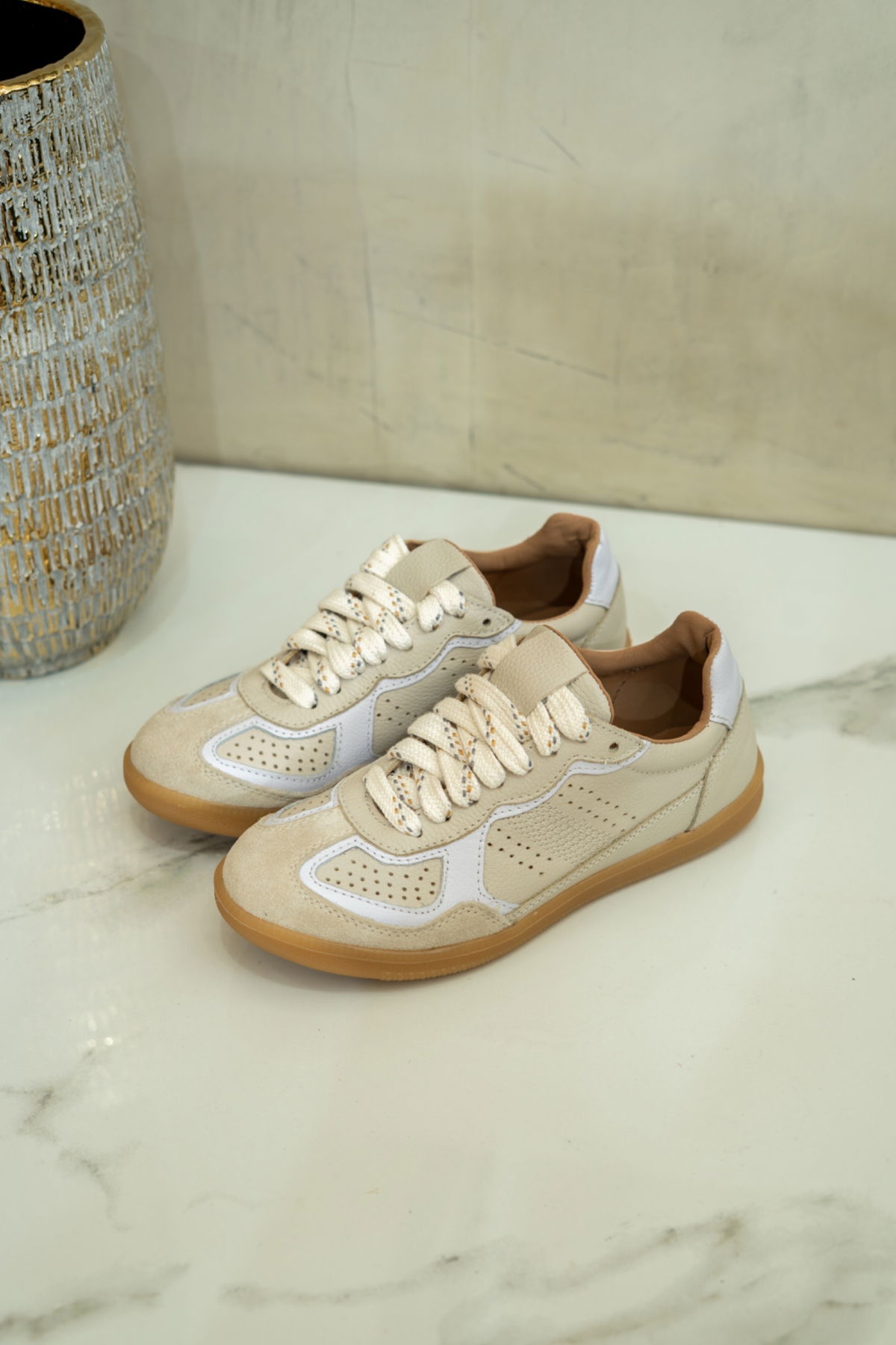 Zapatillas de cuero . Nuevas combinaciones: visón, beige, rojo, platino, choco, negro y rafia.
