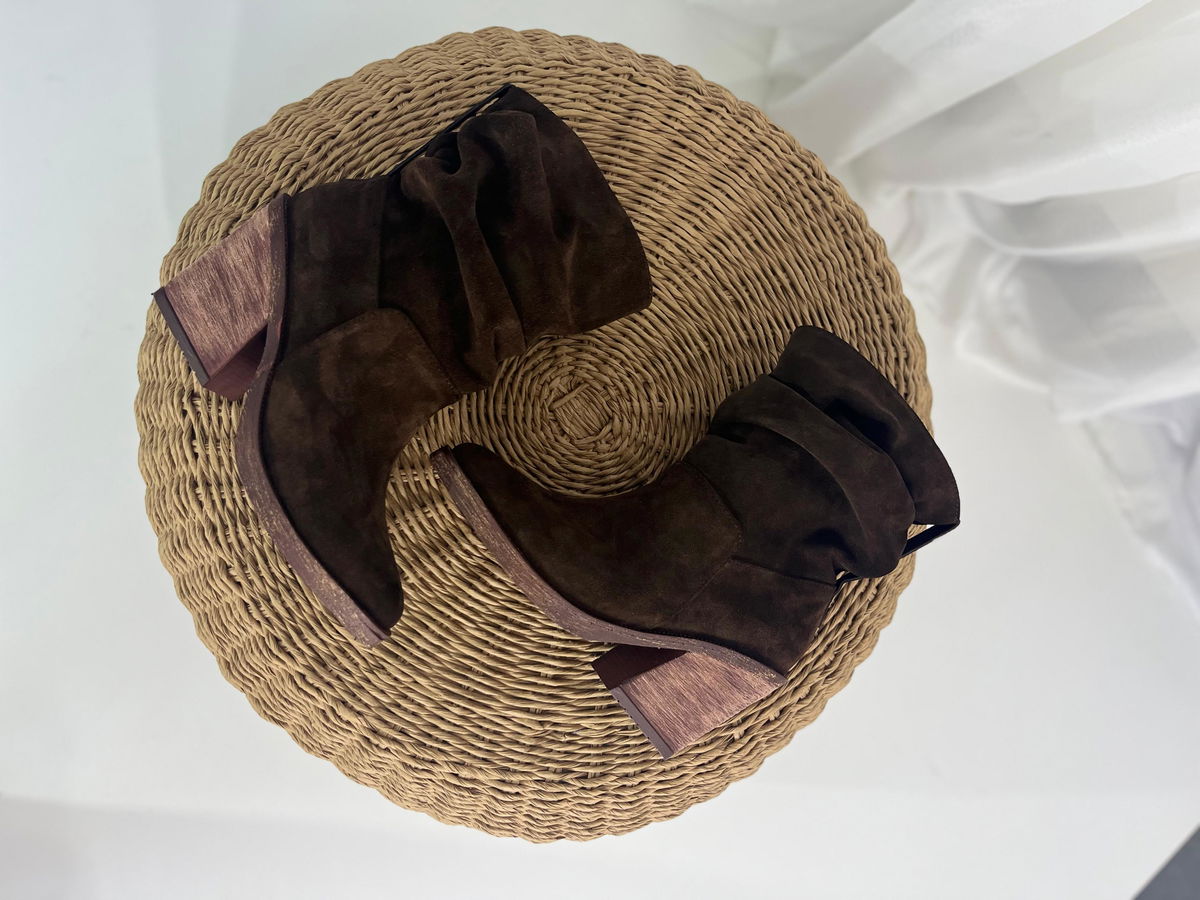 Botas Mora confeccionadas en Cuero Gamuzon con un taco de 9 cm y una caña de 15 cm súper cómodas y livianas vienen en color chocolate y en negro del talle 35 al 40