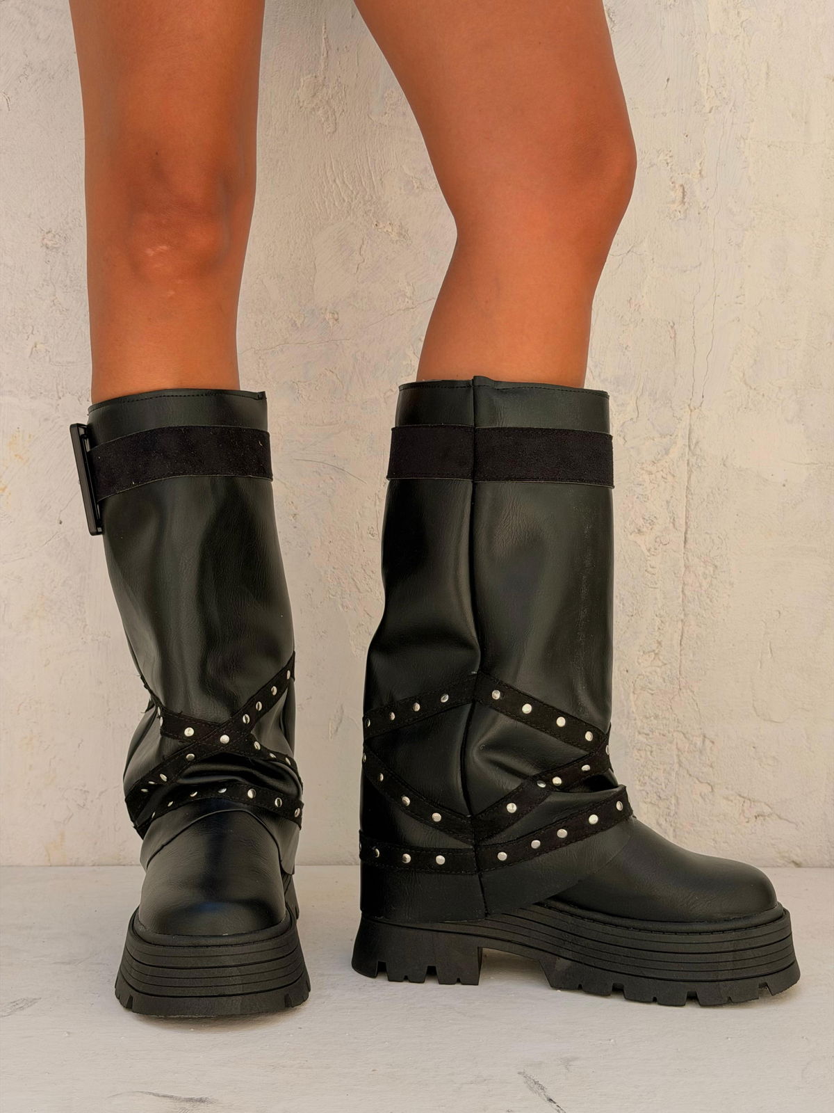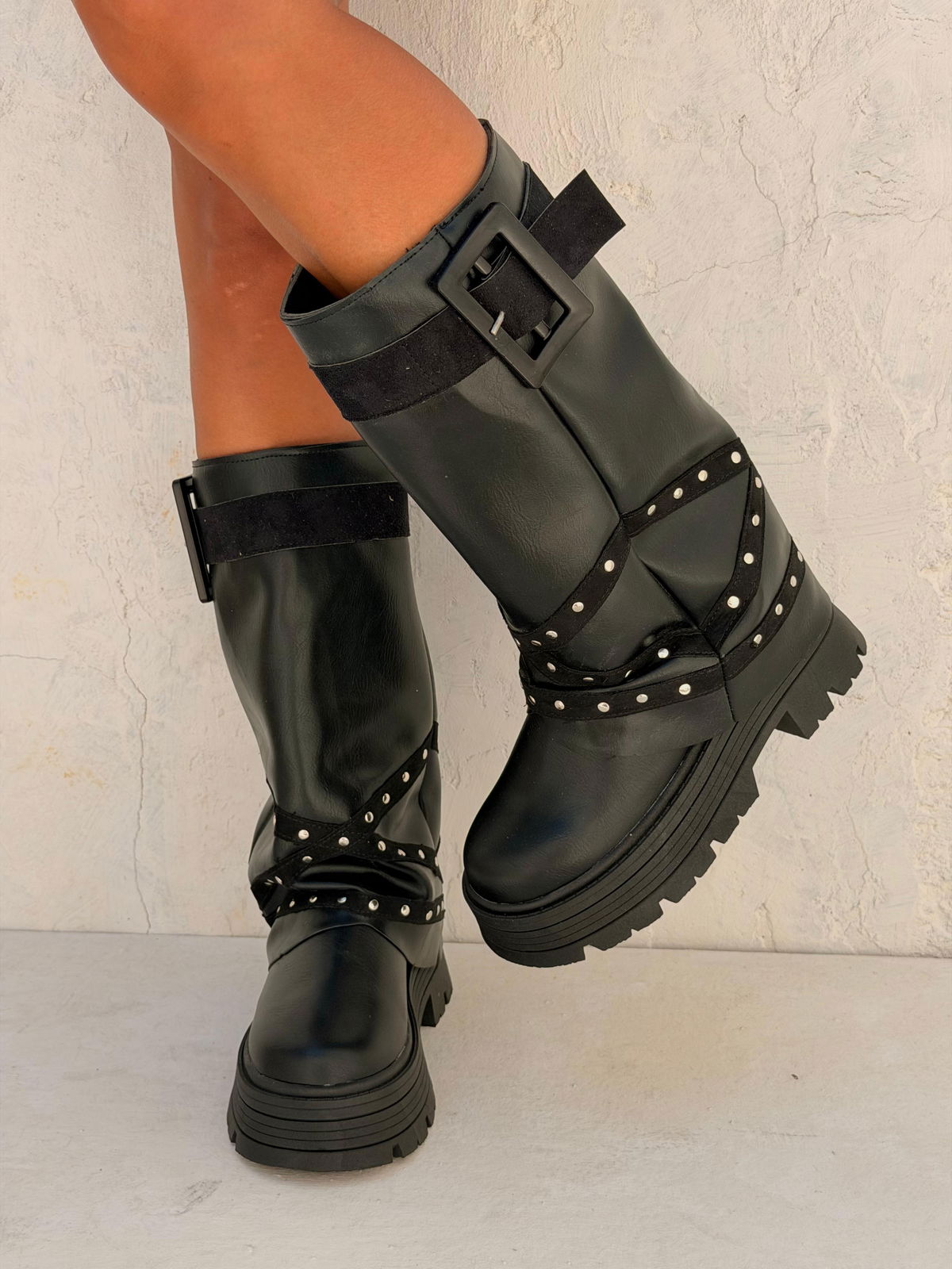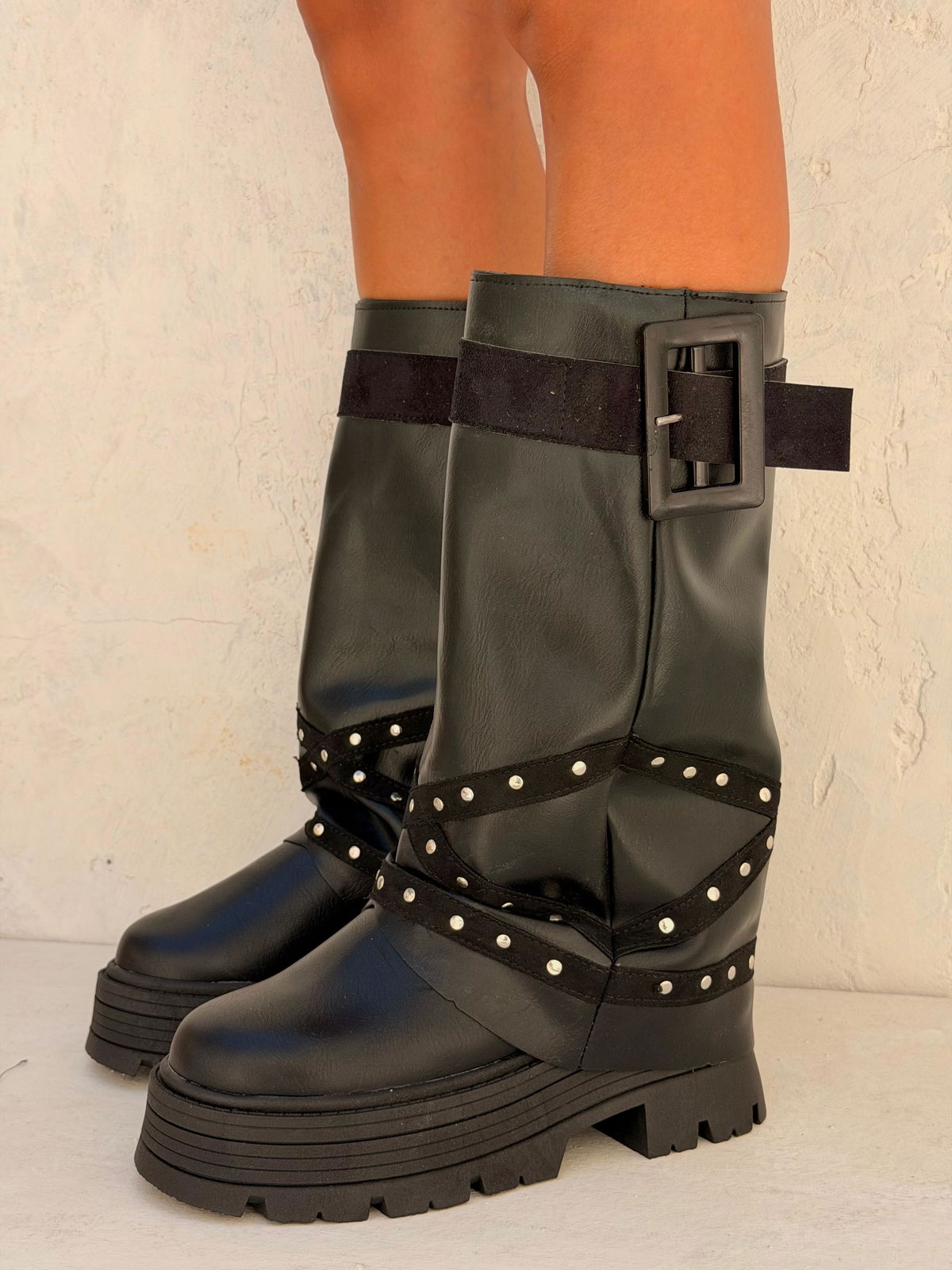 ✨ROYAL✨- DEL 36 AL 40Base de goma inyectada de 6,5cm Capellada de Ecocuero PU Gamuza + hebilla acrílico BLACK