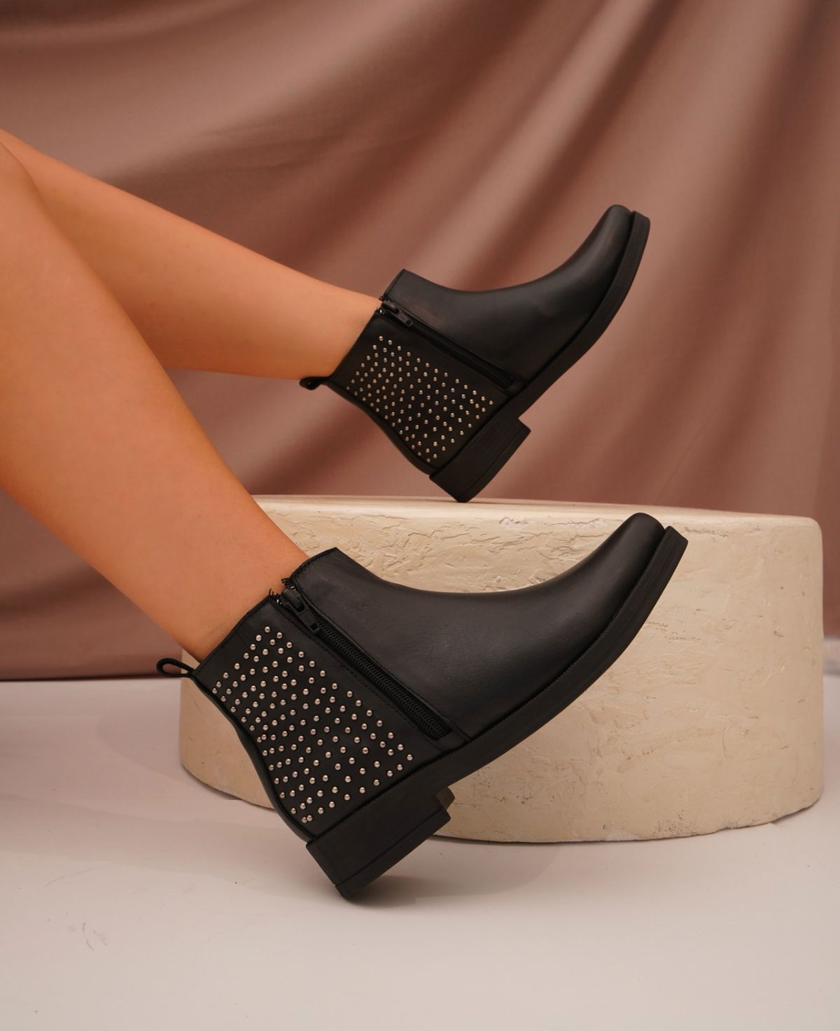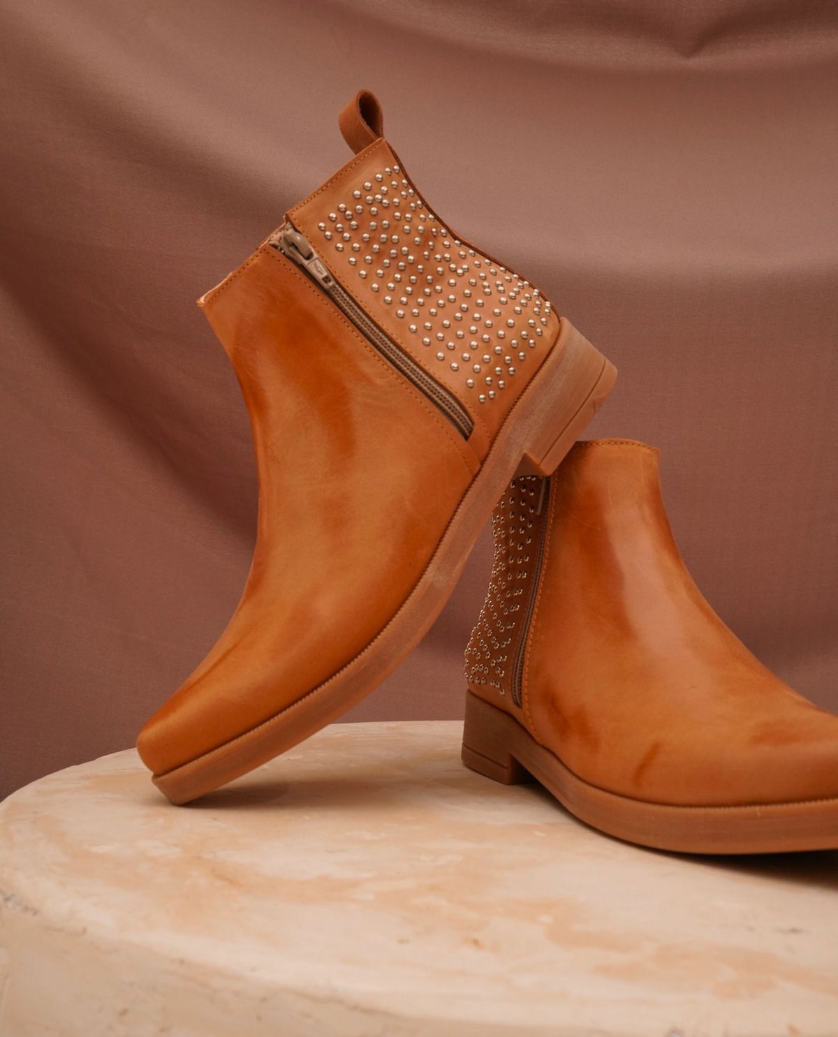 Botas cuero detalle de tachas y cierre lateral base de goma !