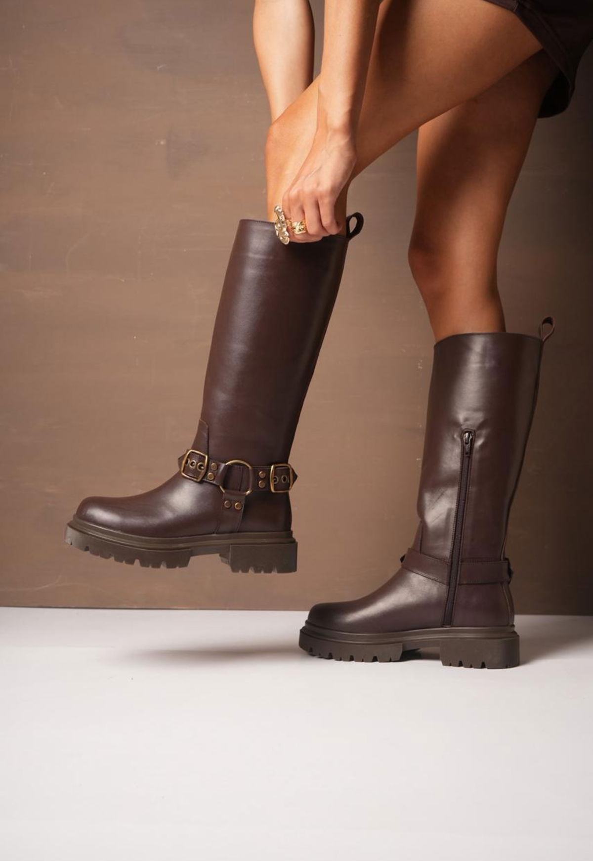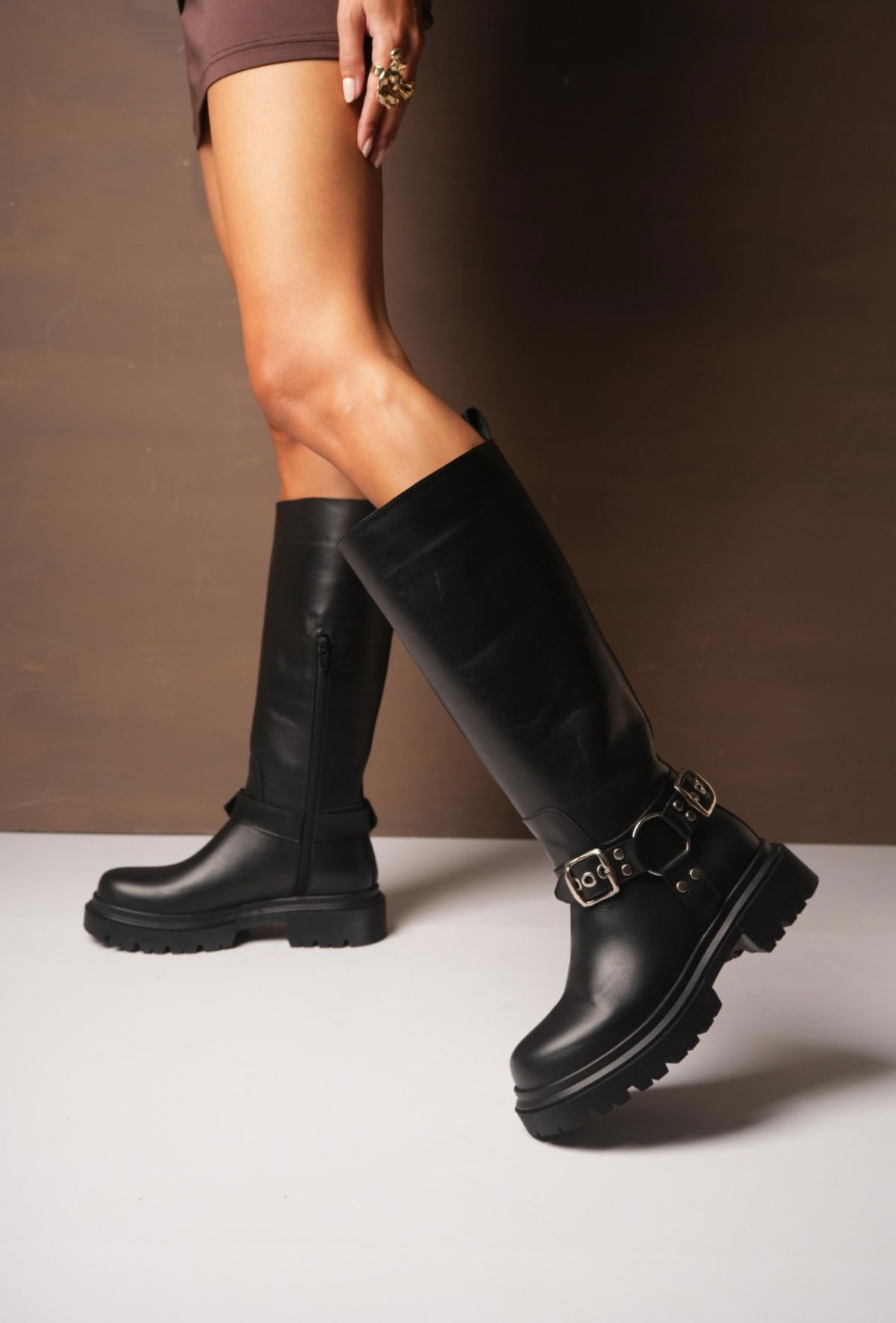 Bota cuero Alta con Hebilla –