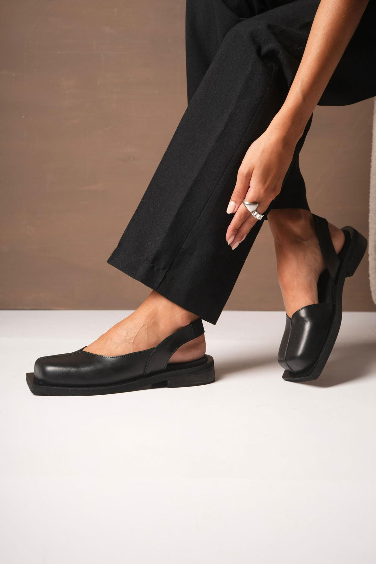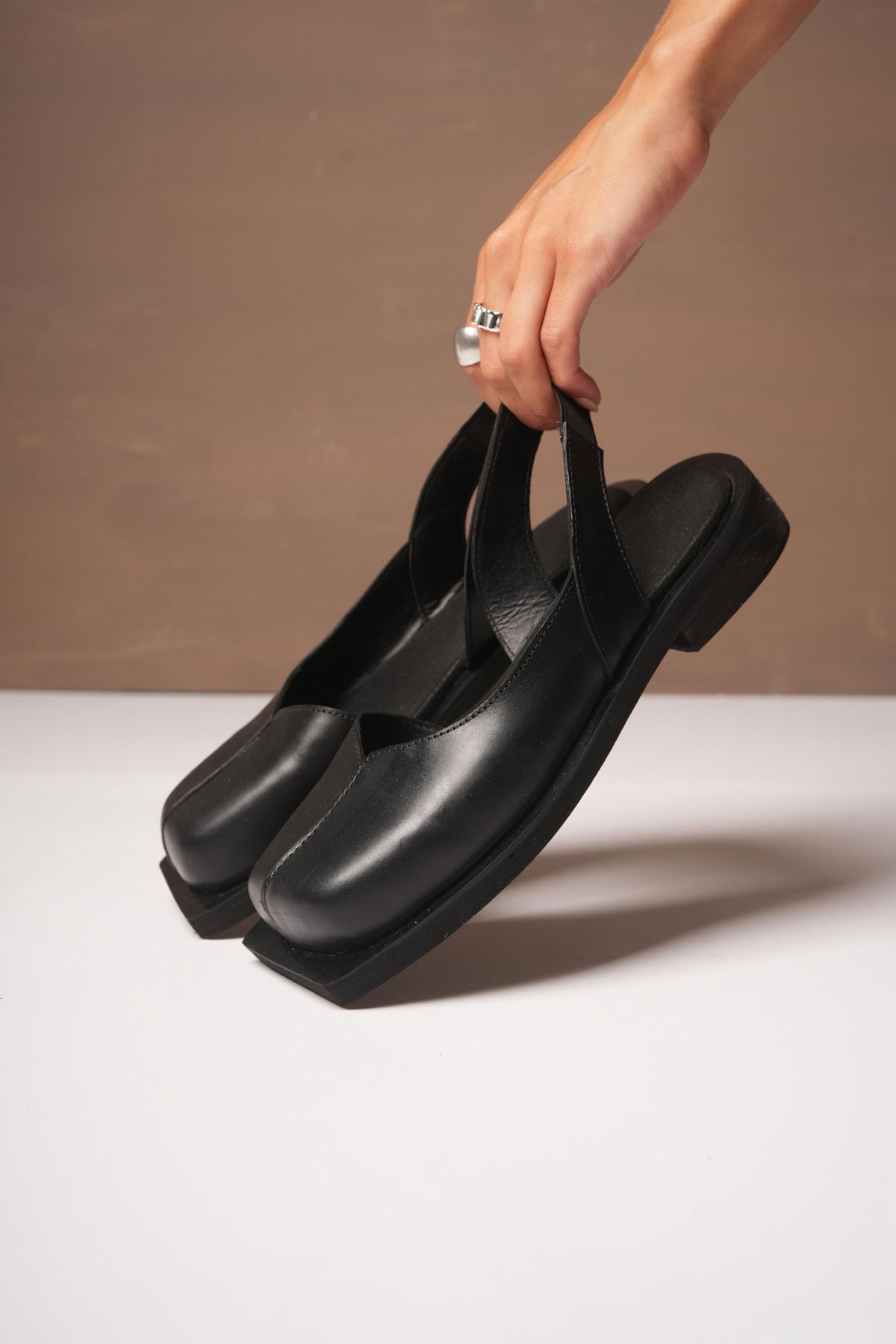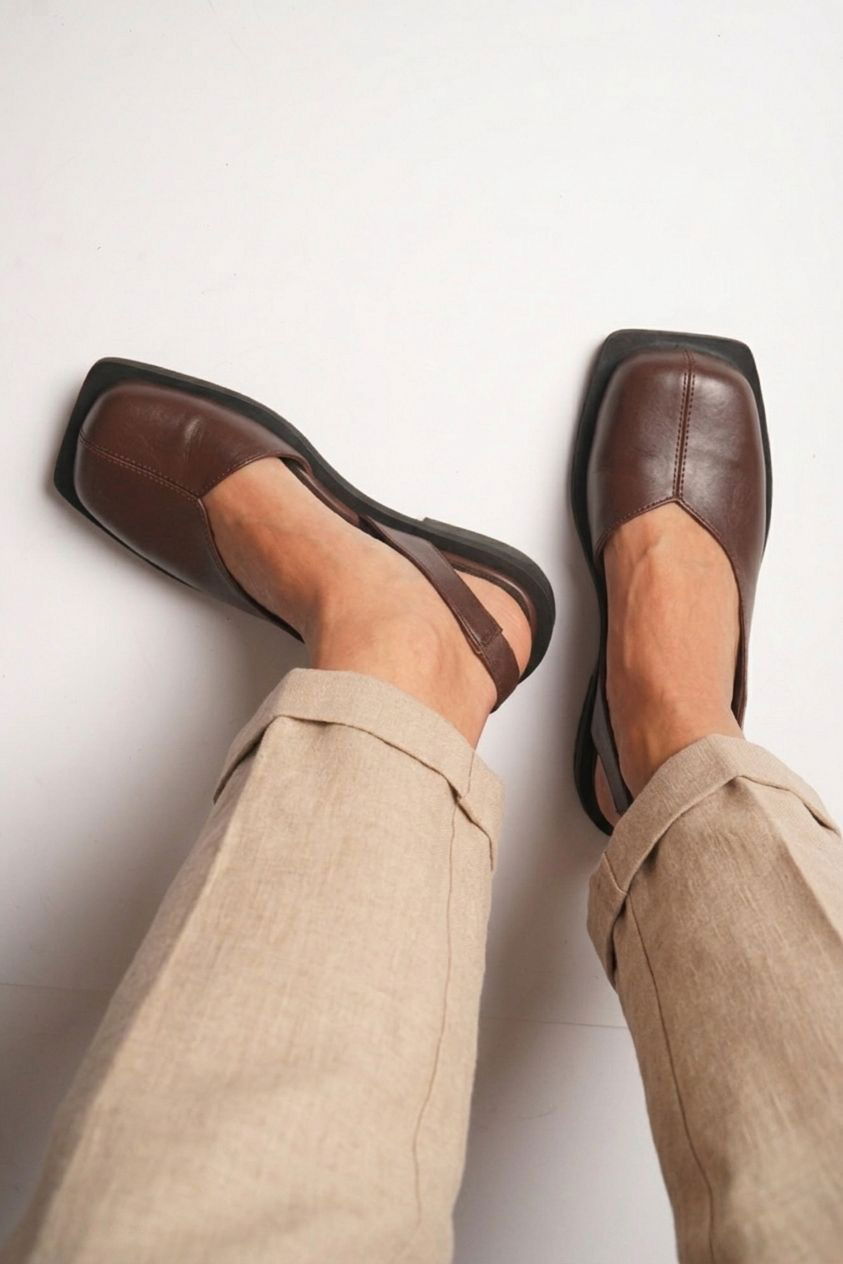 Zapato de cuero destalonado – Negro & Chocolate