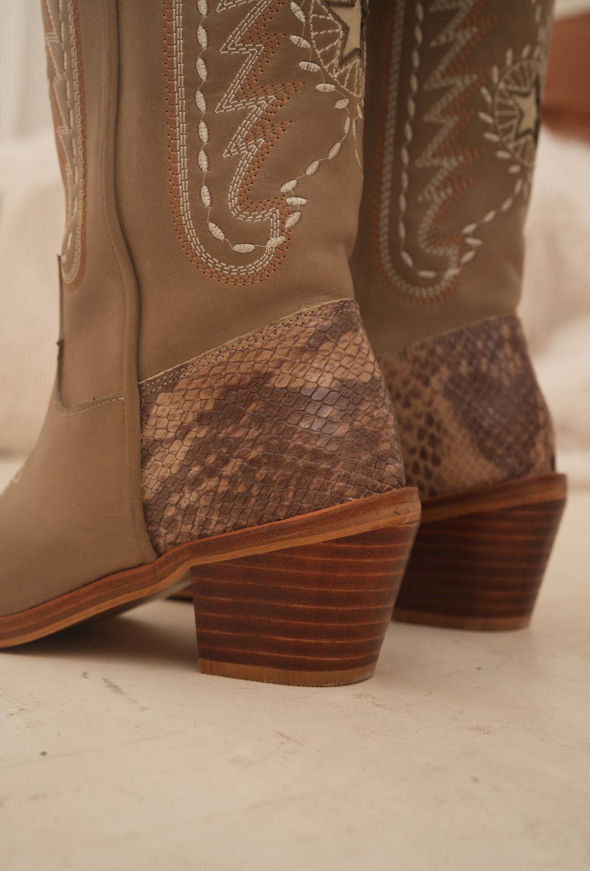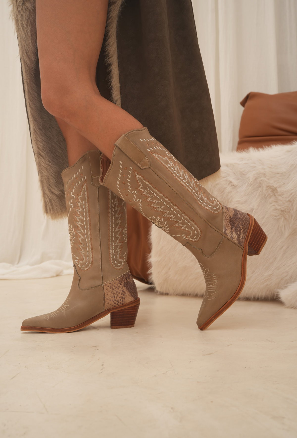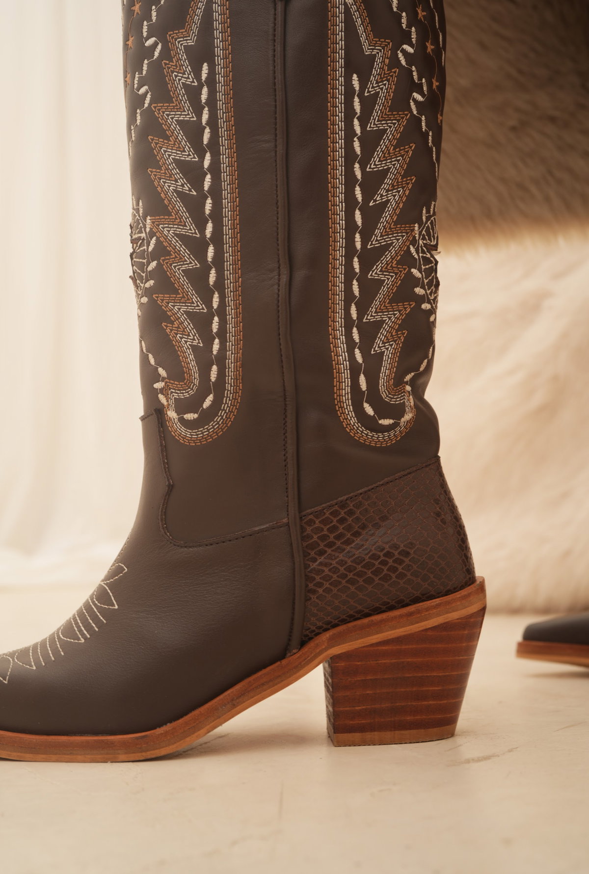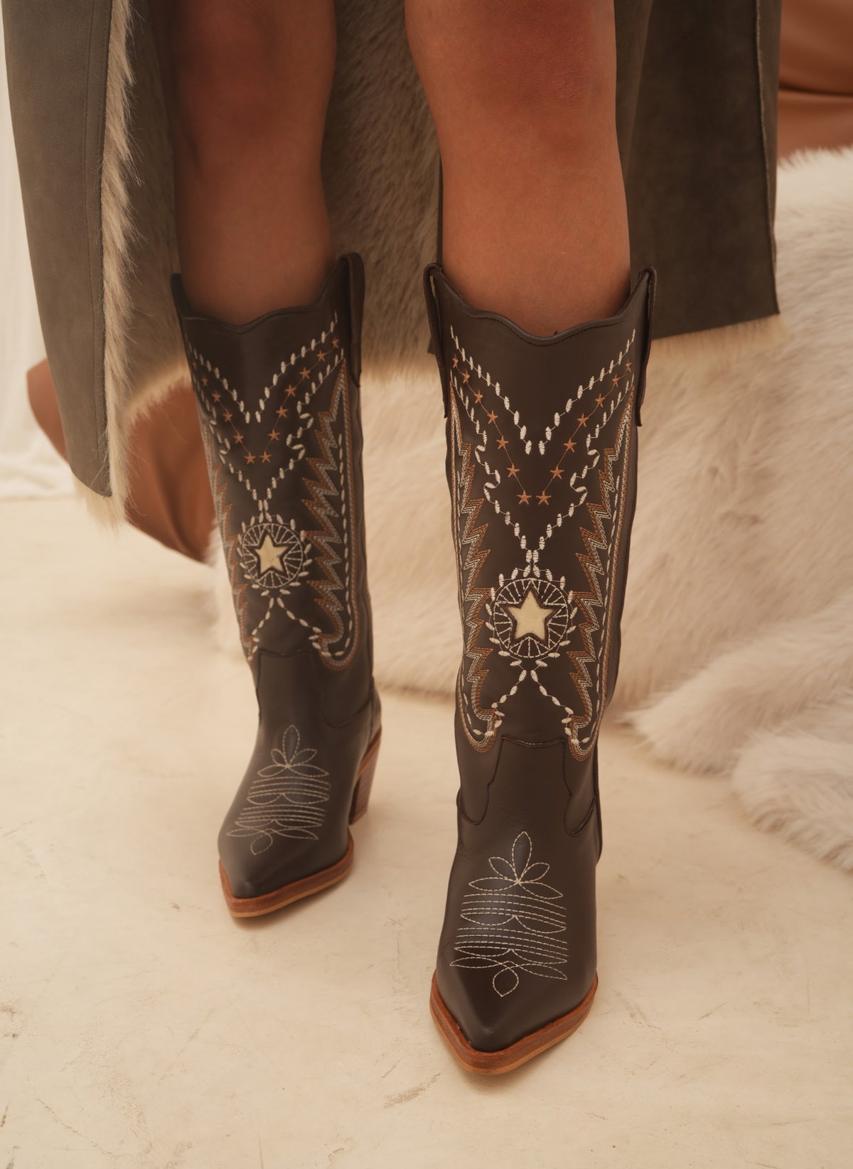 Texanas de cuero bordadas que combinan estilo, carácter y comodidad en cada paso. Confeccionadas en cuero de alta calidad, se destacan por sus delicados bordados artesanales que elevan cualquier look y les dan un toque único y auténtico.