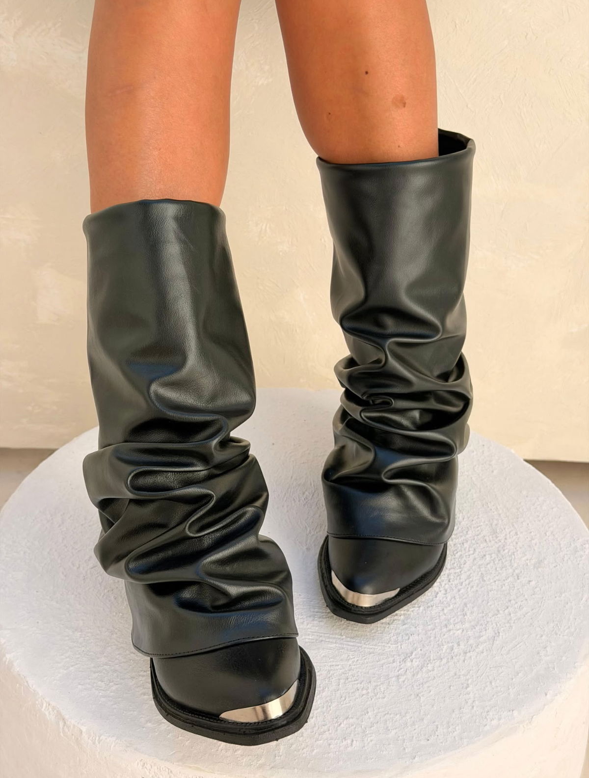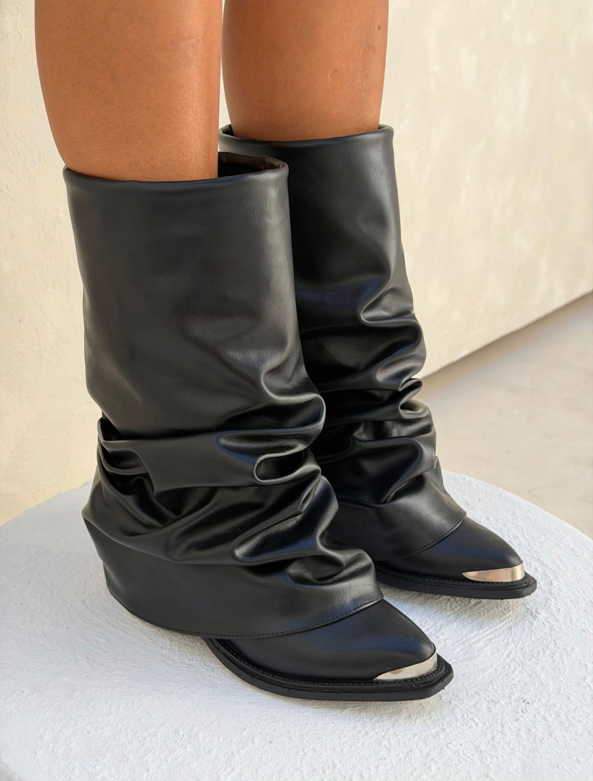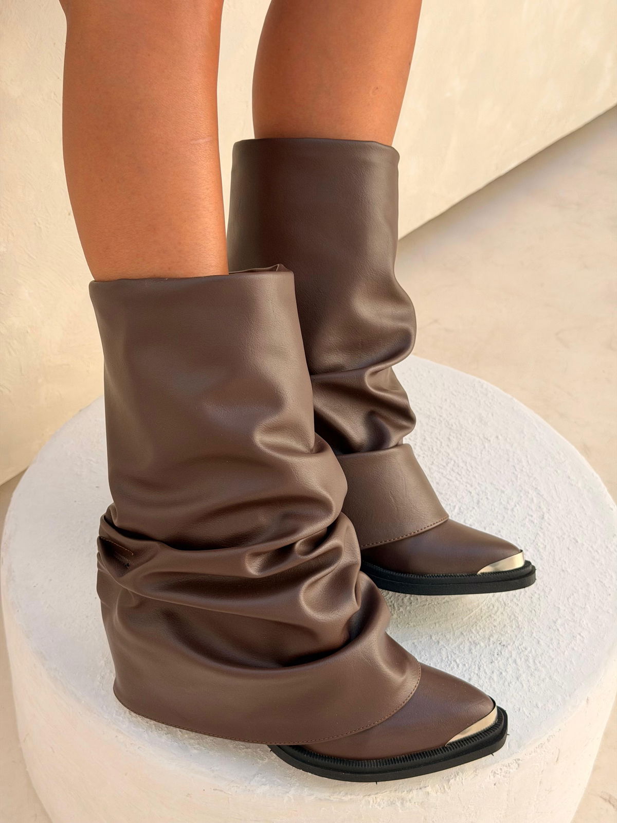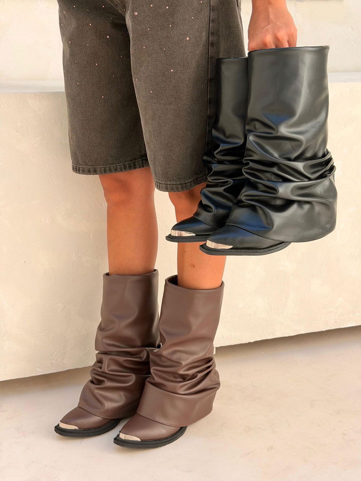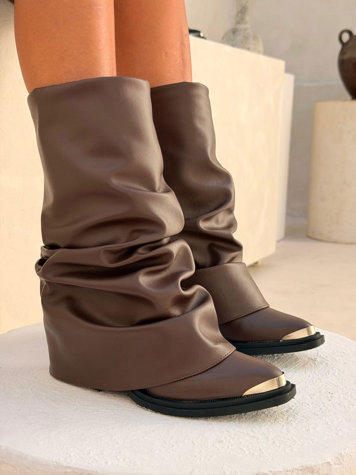 ✨GAIA CHOCO Y NEGRO / Del 36 al 40Capellada completamente arrugada- Ecocuero PUBase de goma inyectada con taco de 5cm Puntera Metálica