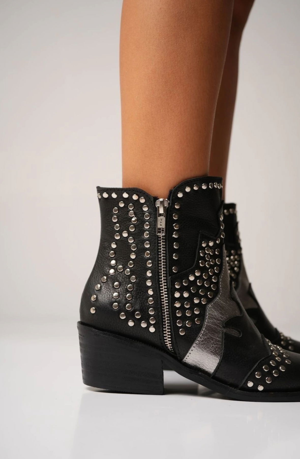 Estas botas cuentan con un detalle de tachas que realza su carácter único y un toque de personalidad. Además, incorporan cierres metálicos en ambos lados, facilitando su colocación y aportando un estilo contemporáneo y práctico.