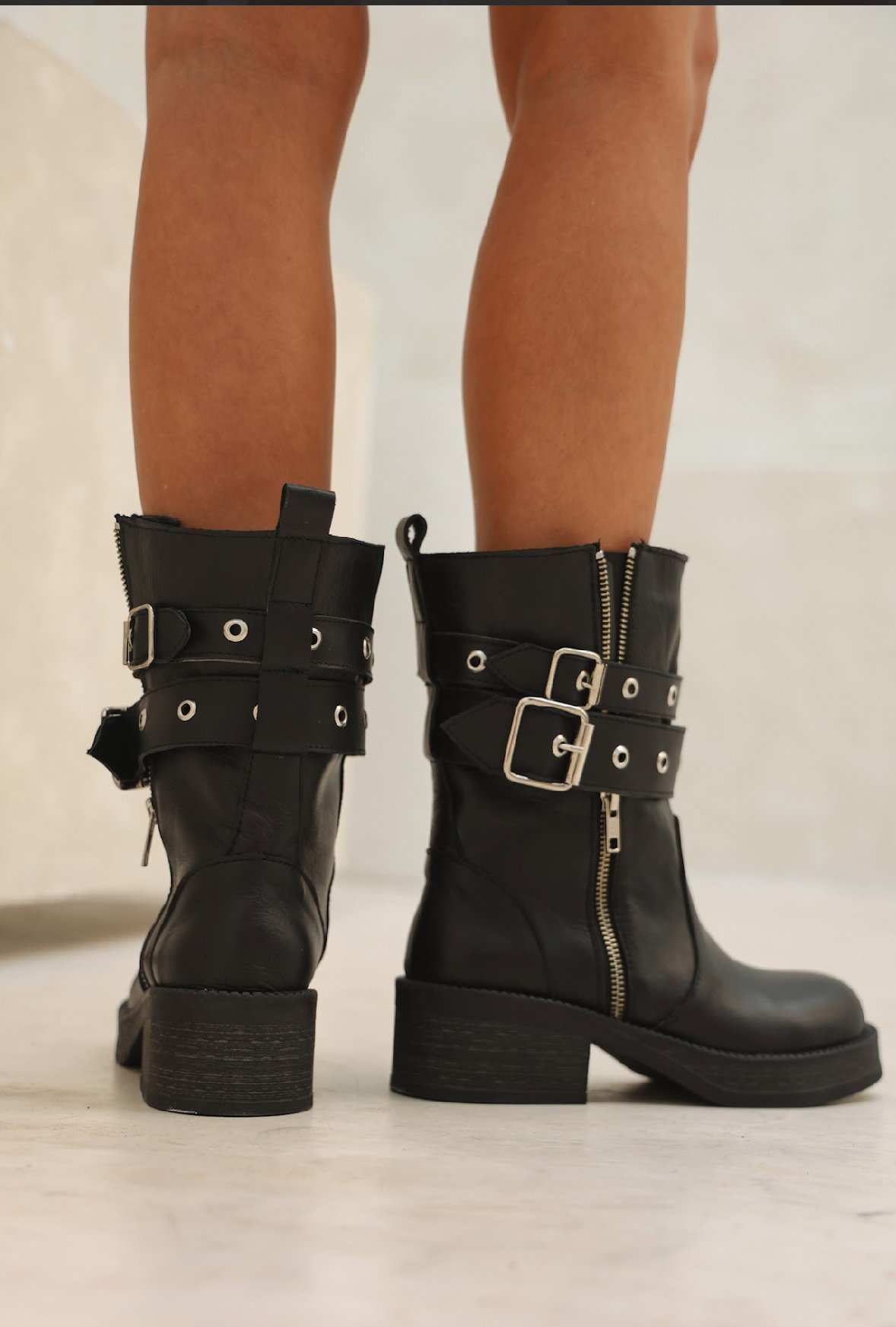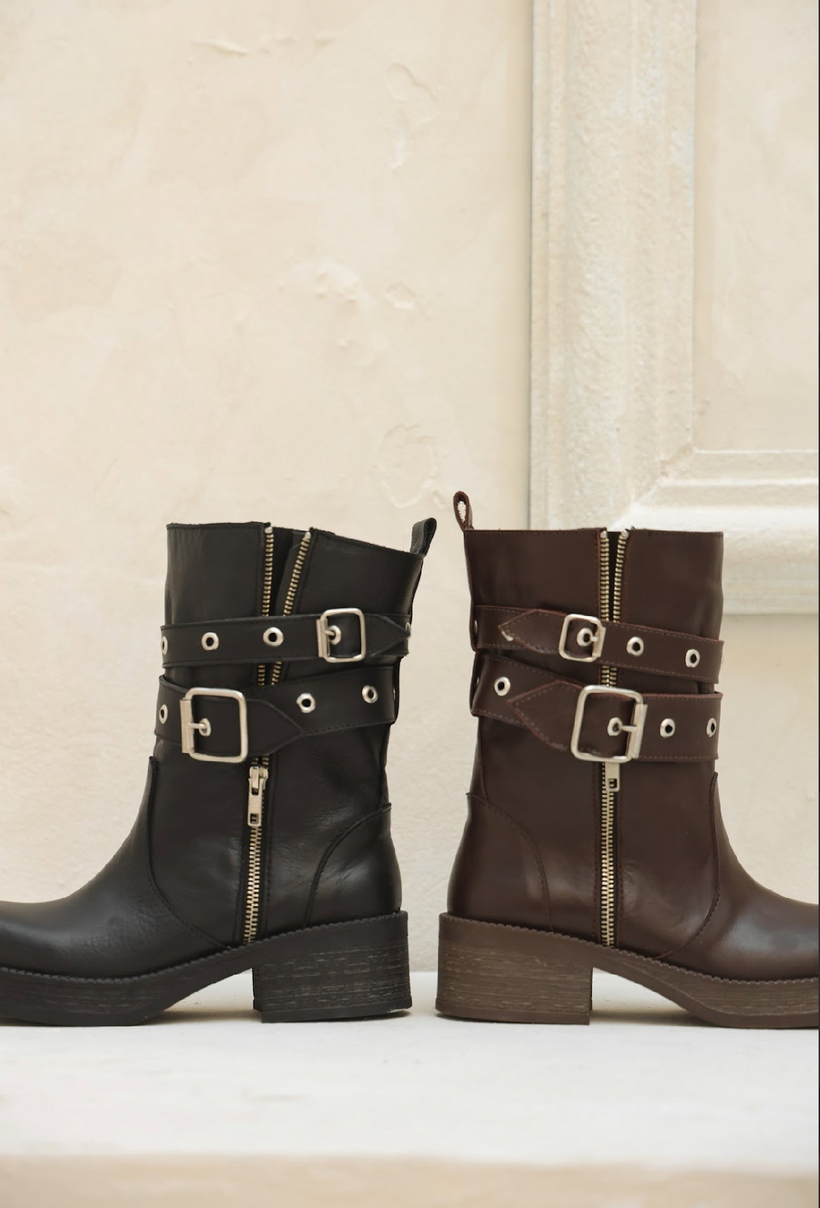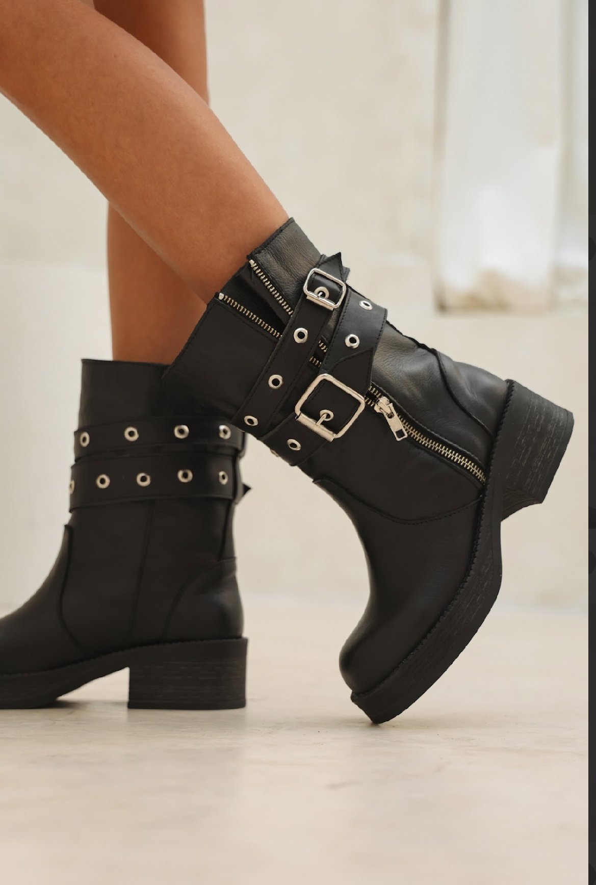 Borcegos de cuero Jaz con cierre lateral y hebillas en sus costados un taco de 5 cm cómodos que levanta cualquier Look