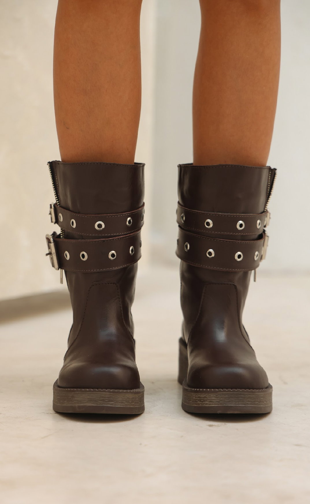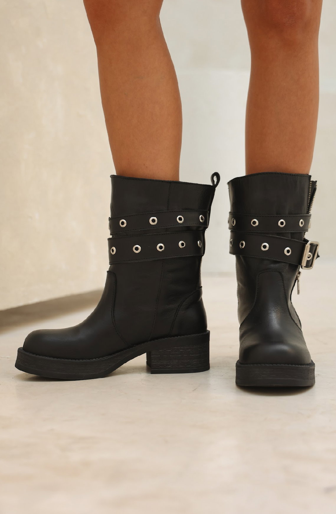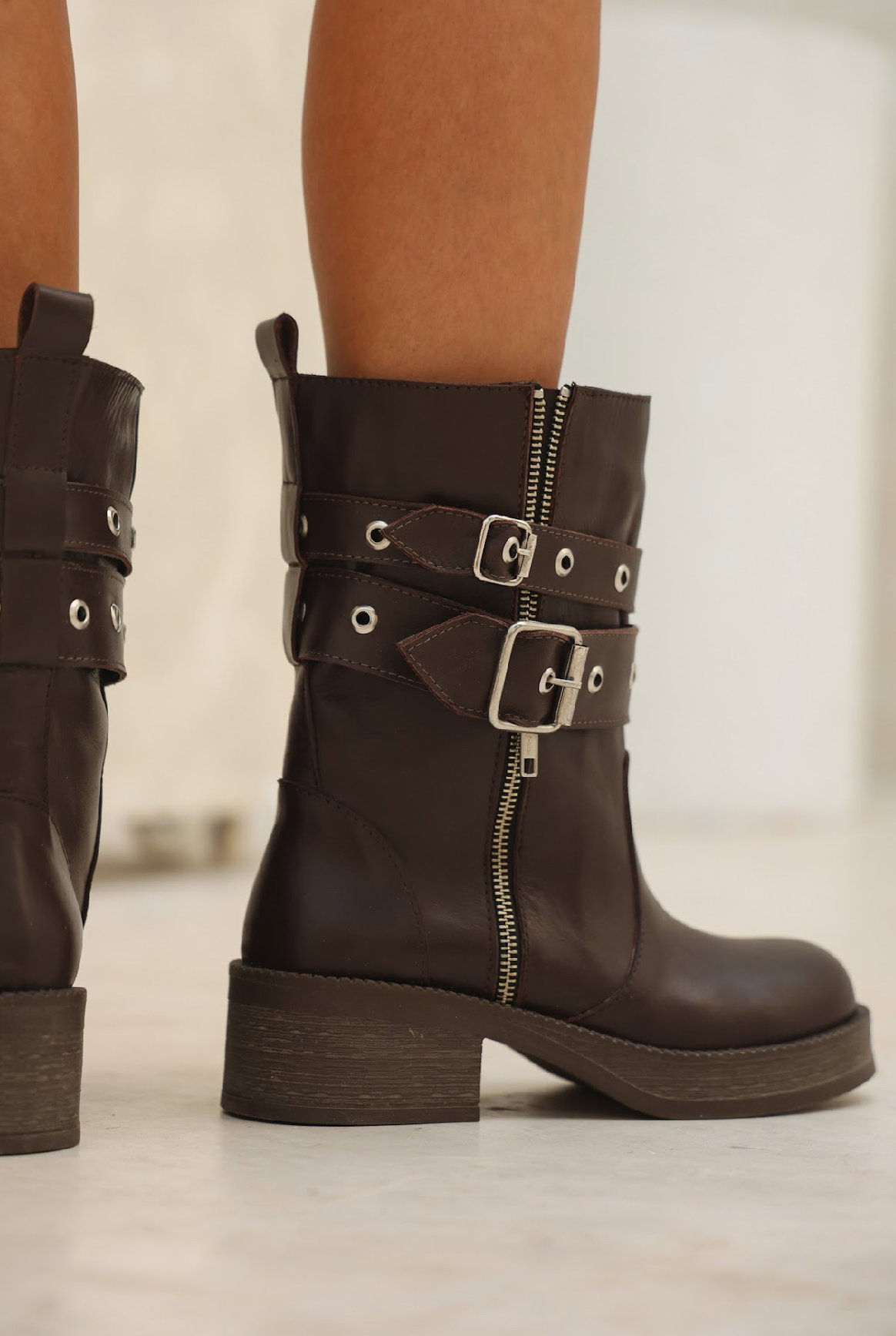 Borcegos de cuero Jaz con cierre lateral y hebillas en sus costados un taco de 5 cm cómodos que levanta cualquier Look