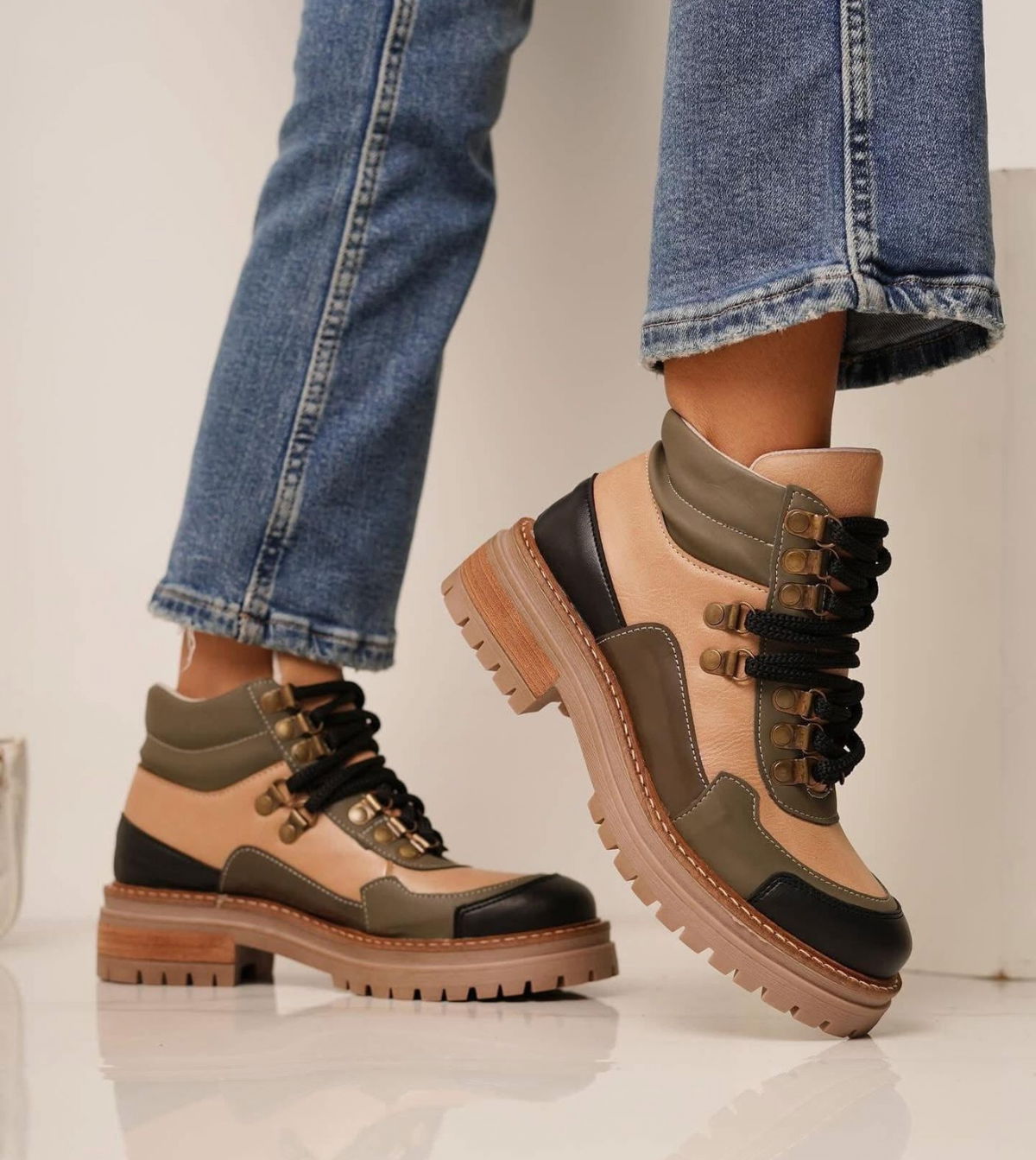 Borcegos combinados cuero Pu