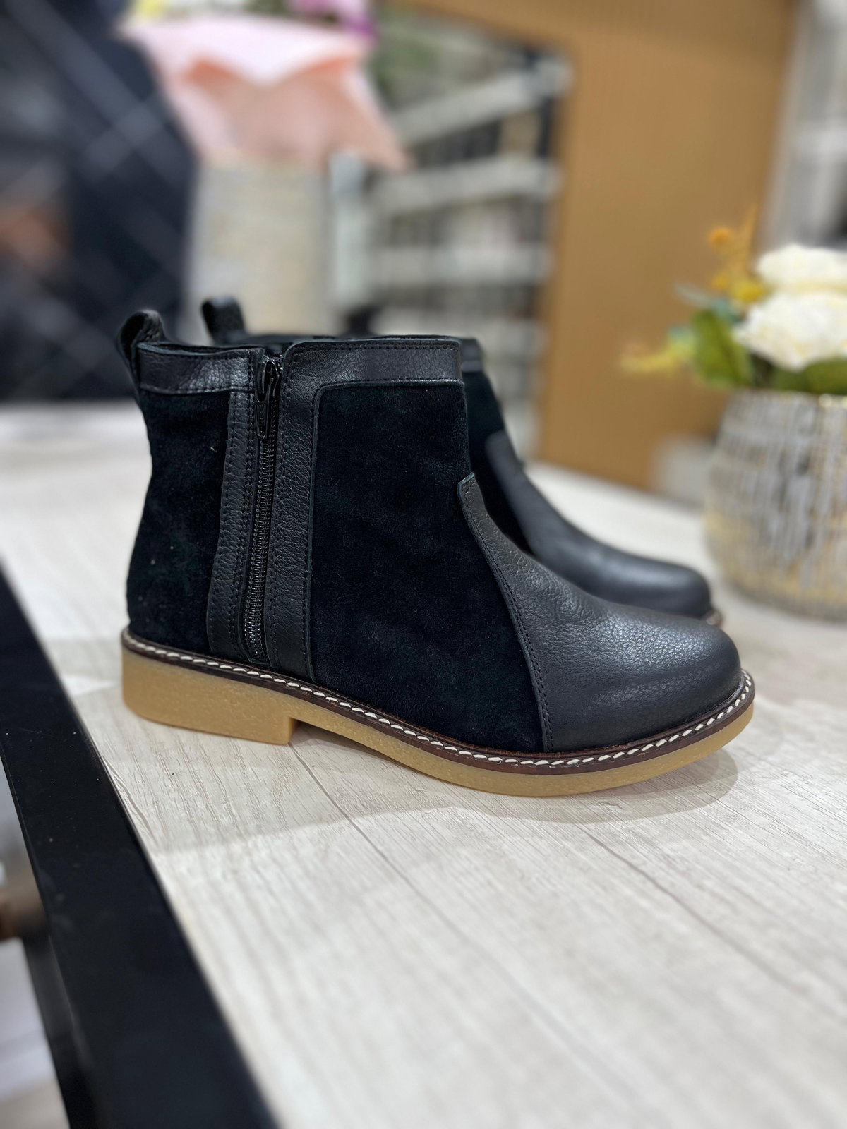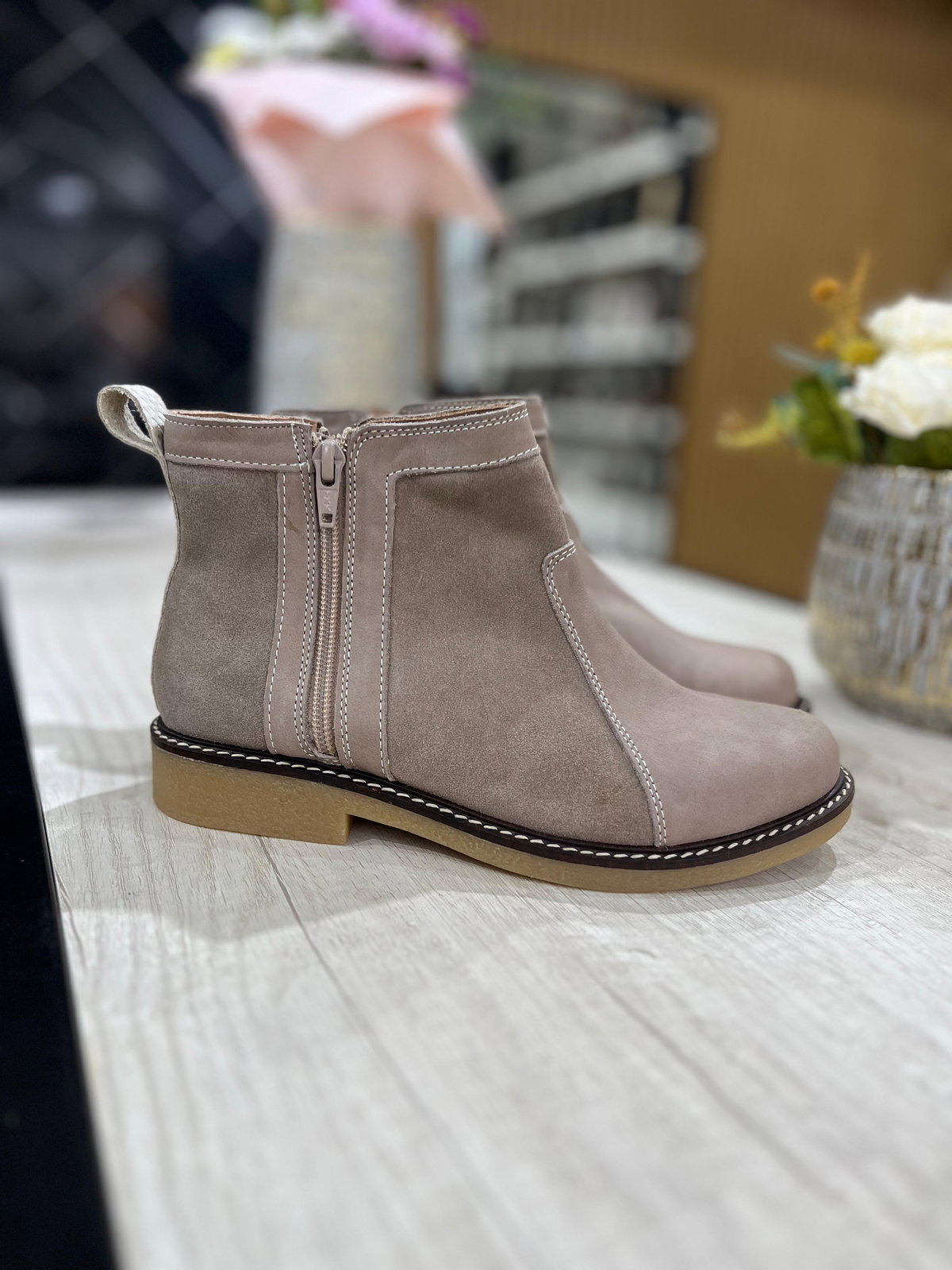 Borcegos de cuero Gamuza con cuero base TR de goma sumamente no se parten cierre en su lateral son sumamente livianos y cómodos para todo el día!