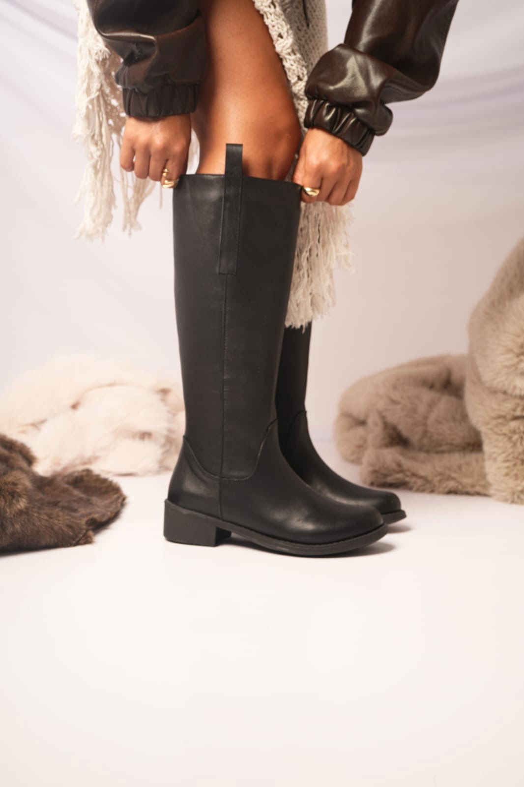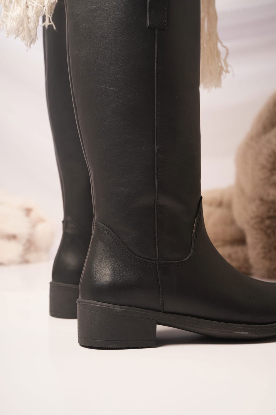 Nuestras botas de montar negras están confeccionadas en cuero de alta calidad, con una estructura firme que estiliza la pierna y aporta presencia en cada paso.
