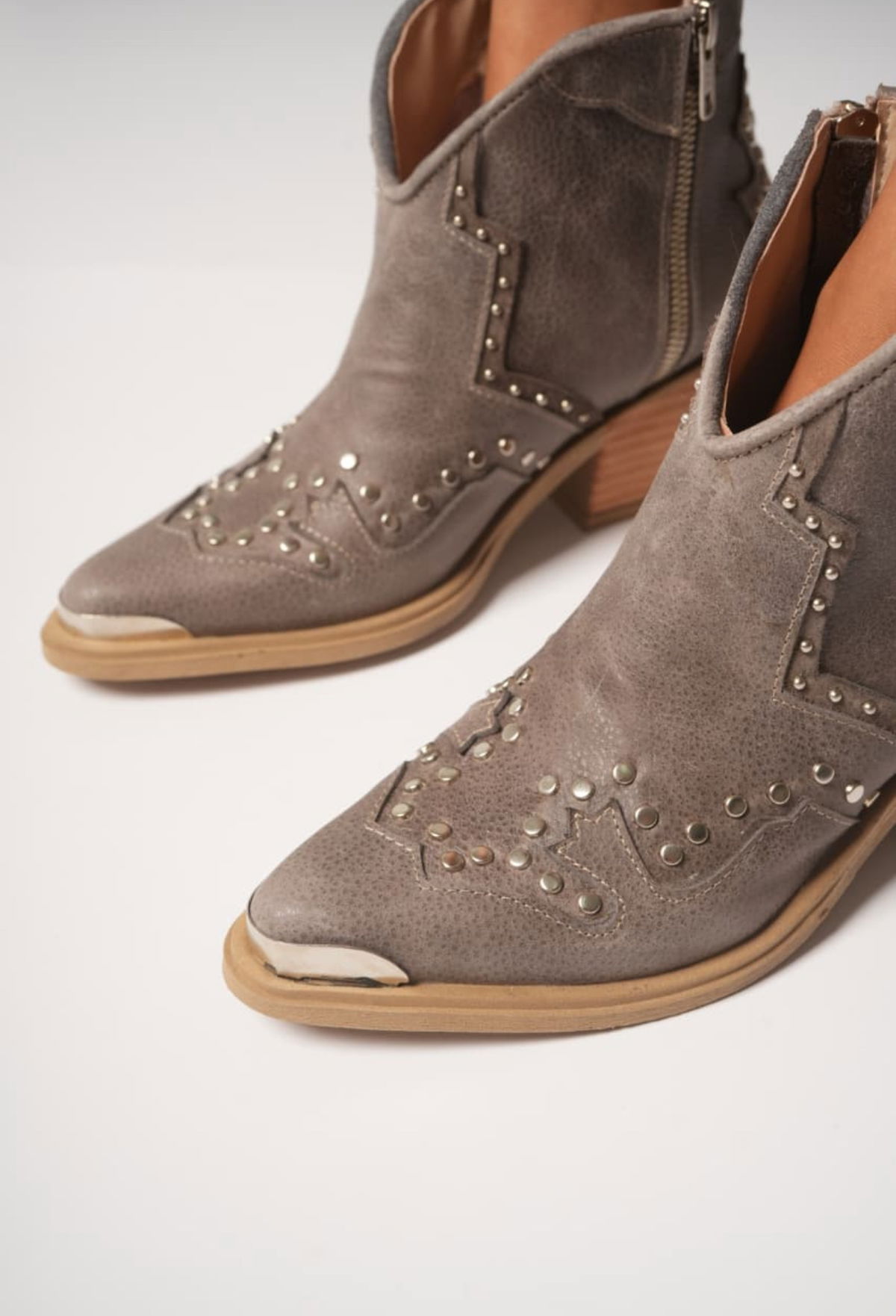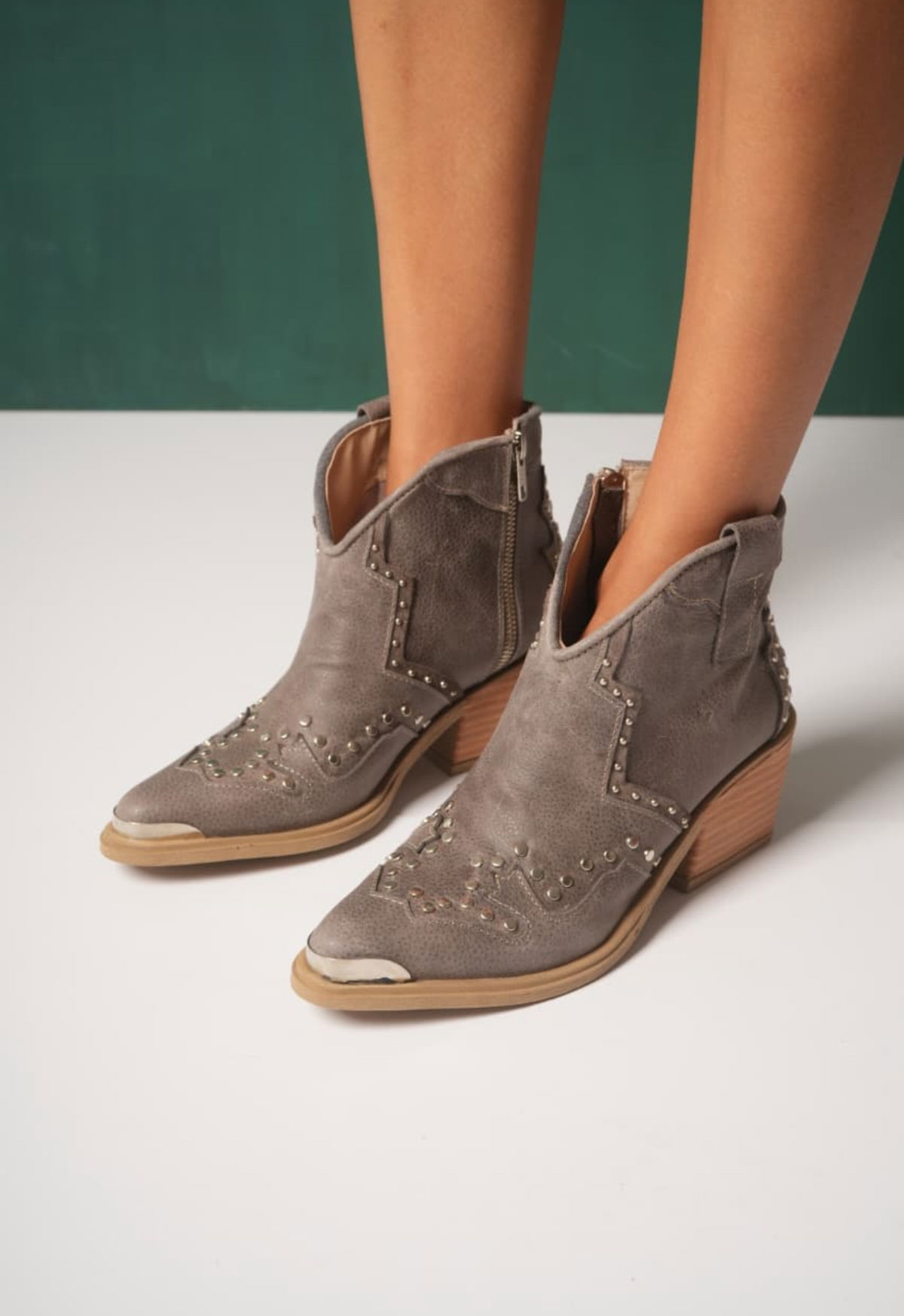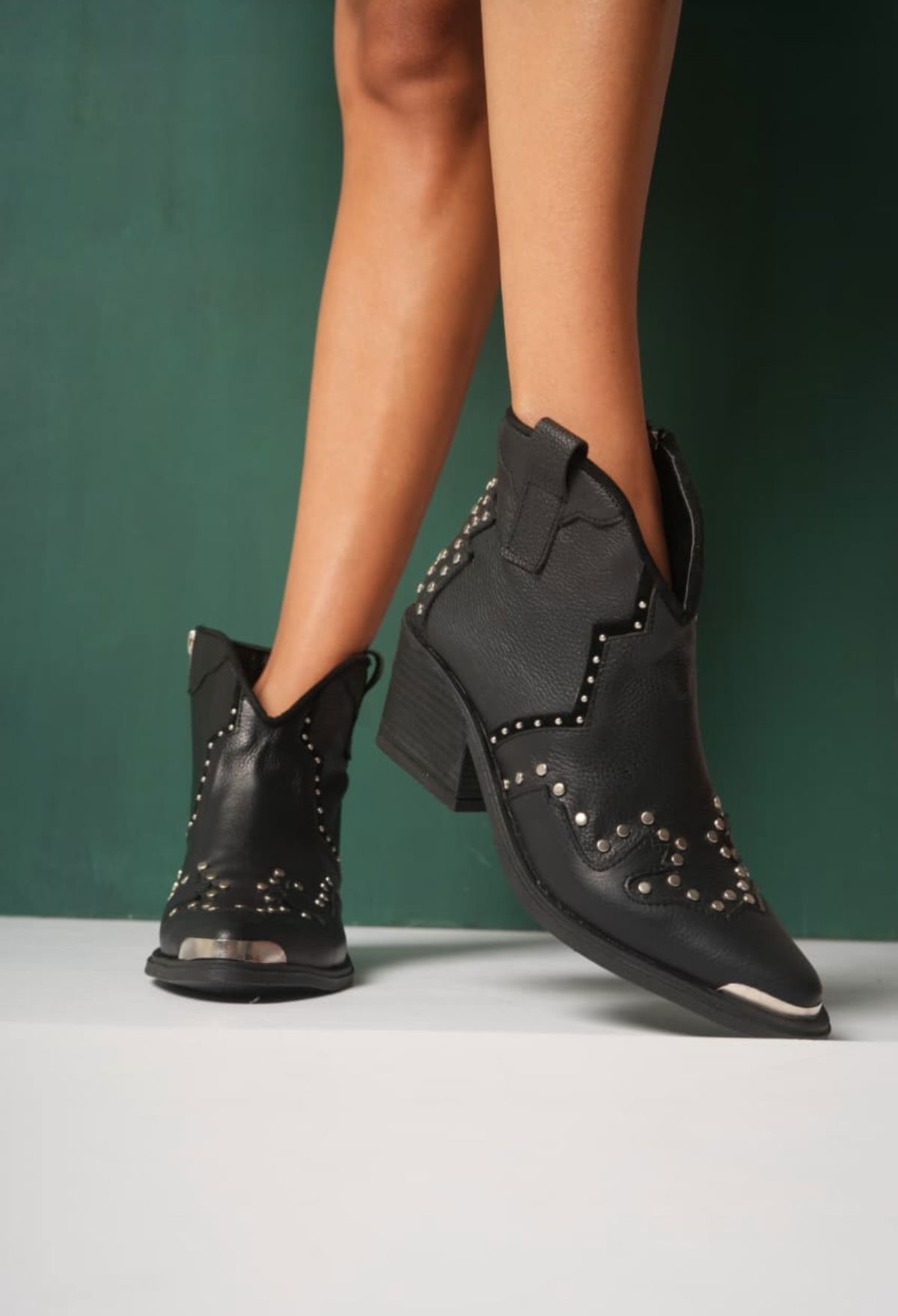 -Cuero vacuno flooter -Detalles de tachas y línea bordadas con puntera de metal Cierre laterales interno Taco 6cm - -Colores : - Negro - Suela - Vison - Talles del 36 al 40 - Horma :normal