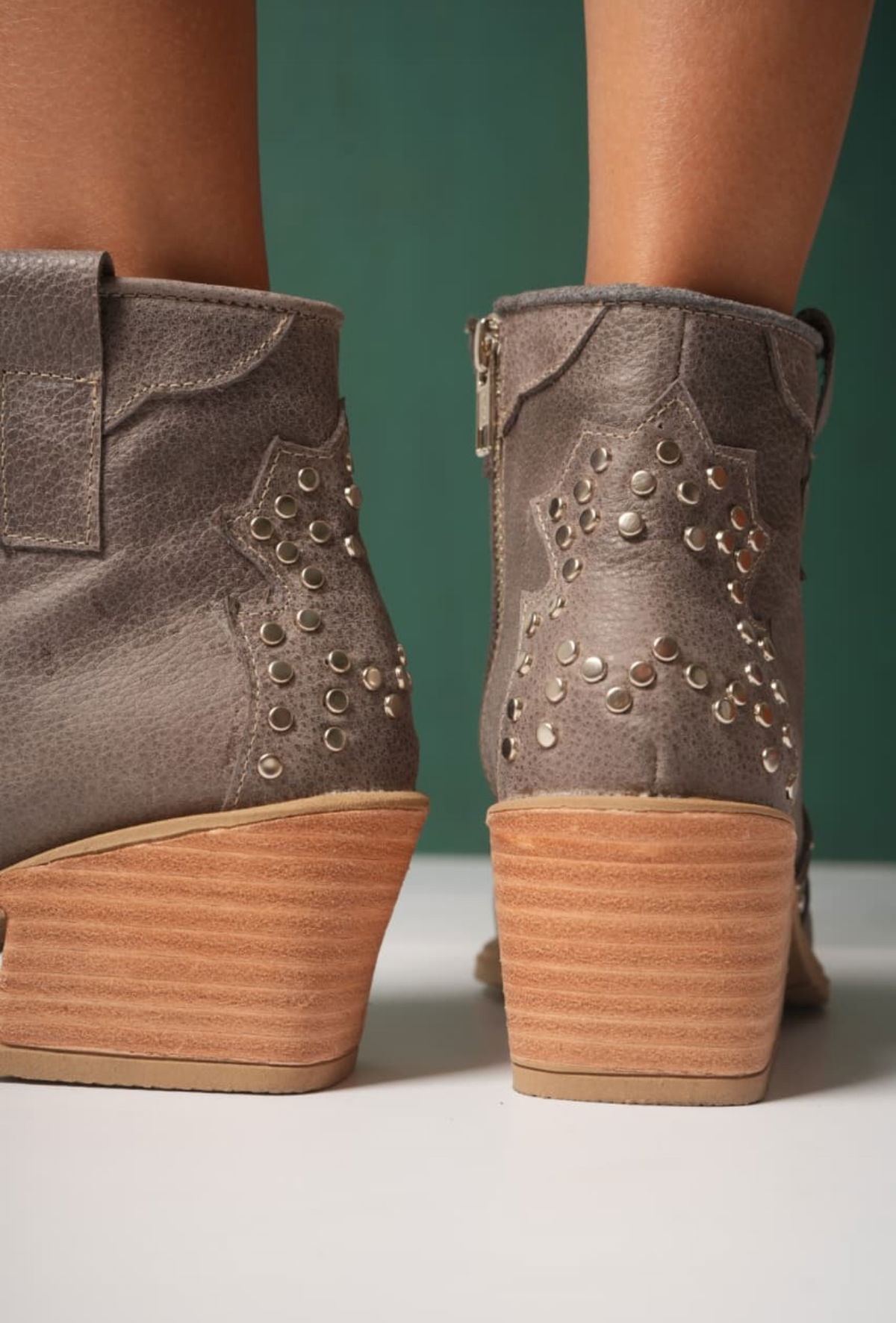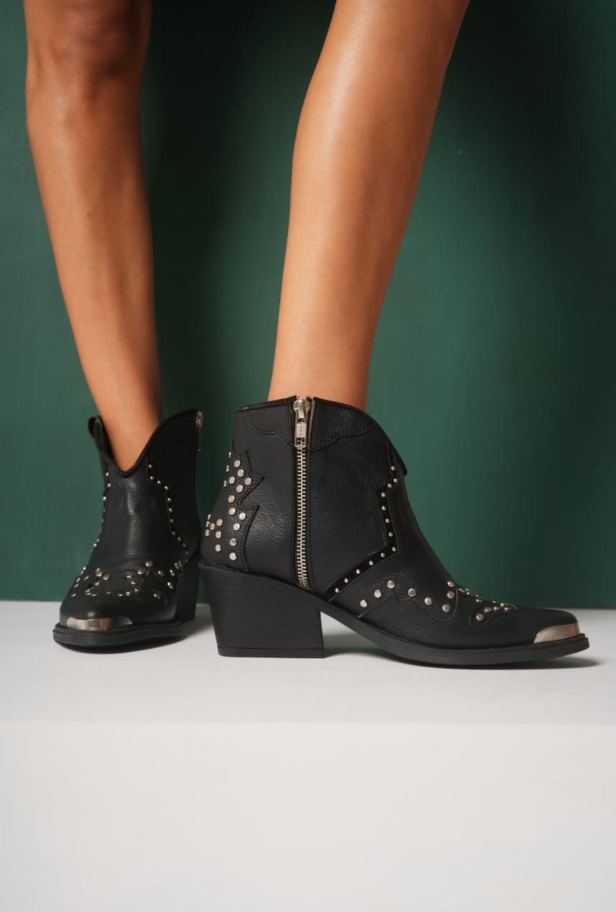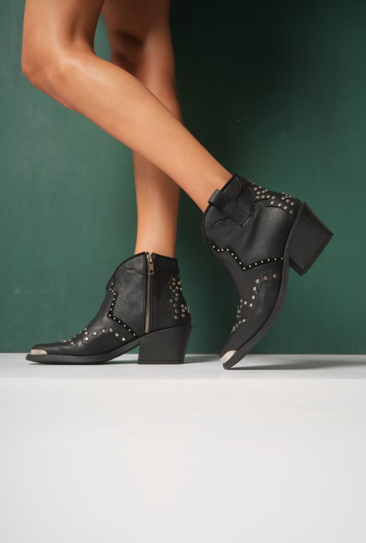-Cuero vacuno flooter -Detalles de tachas y línea bordadas con puntera de metal Cierre laterales interno Taco 6cm - -Colores : - Negro - Suela - Vison - Talles del 36 al 40 - Horma :normal