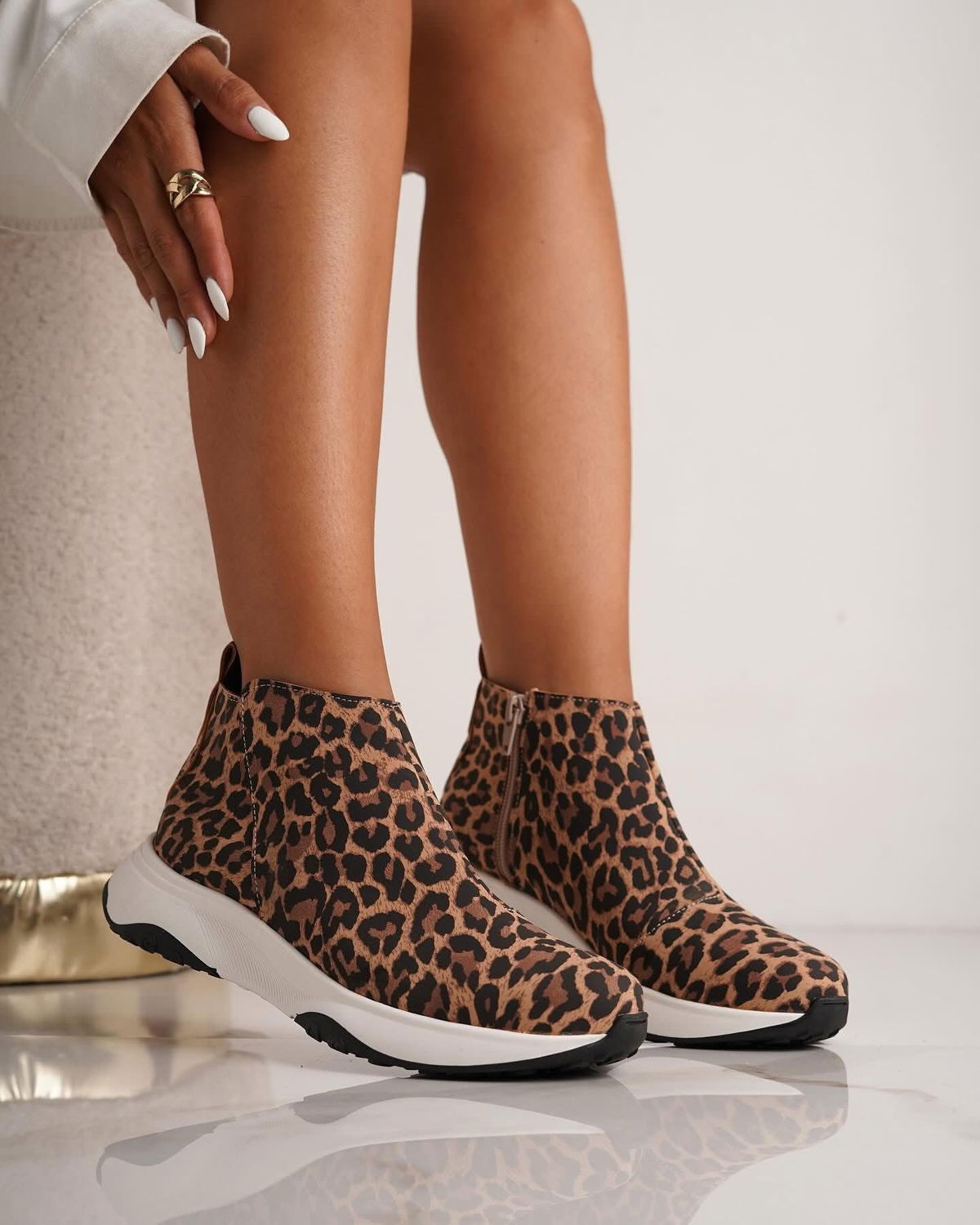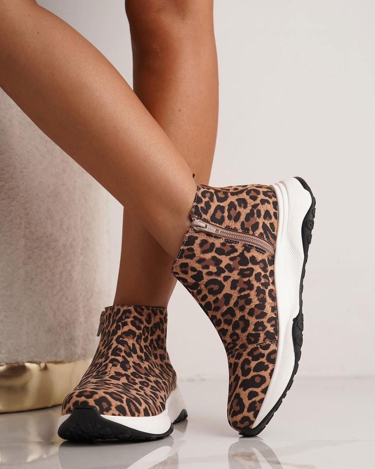 Una zapatilla cómoda y canchera para todos los días. Su diseño en animal print le da un toque moderno y llamativo que levanta cualquier look, mientras que la base deportiva aporta máxima comodidad para usarla durante horas.