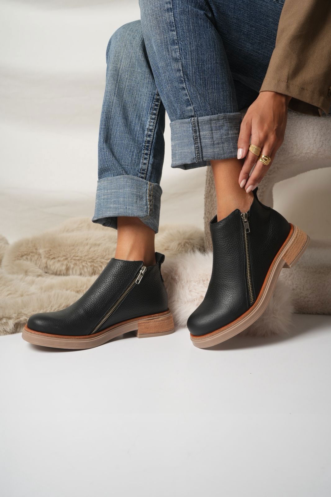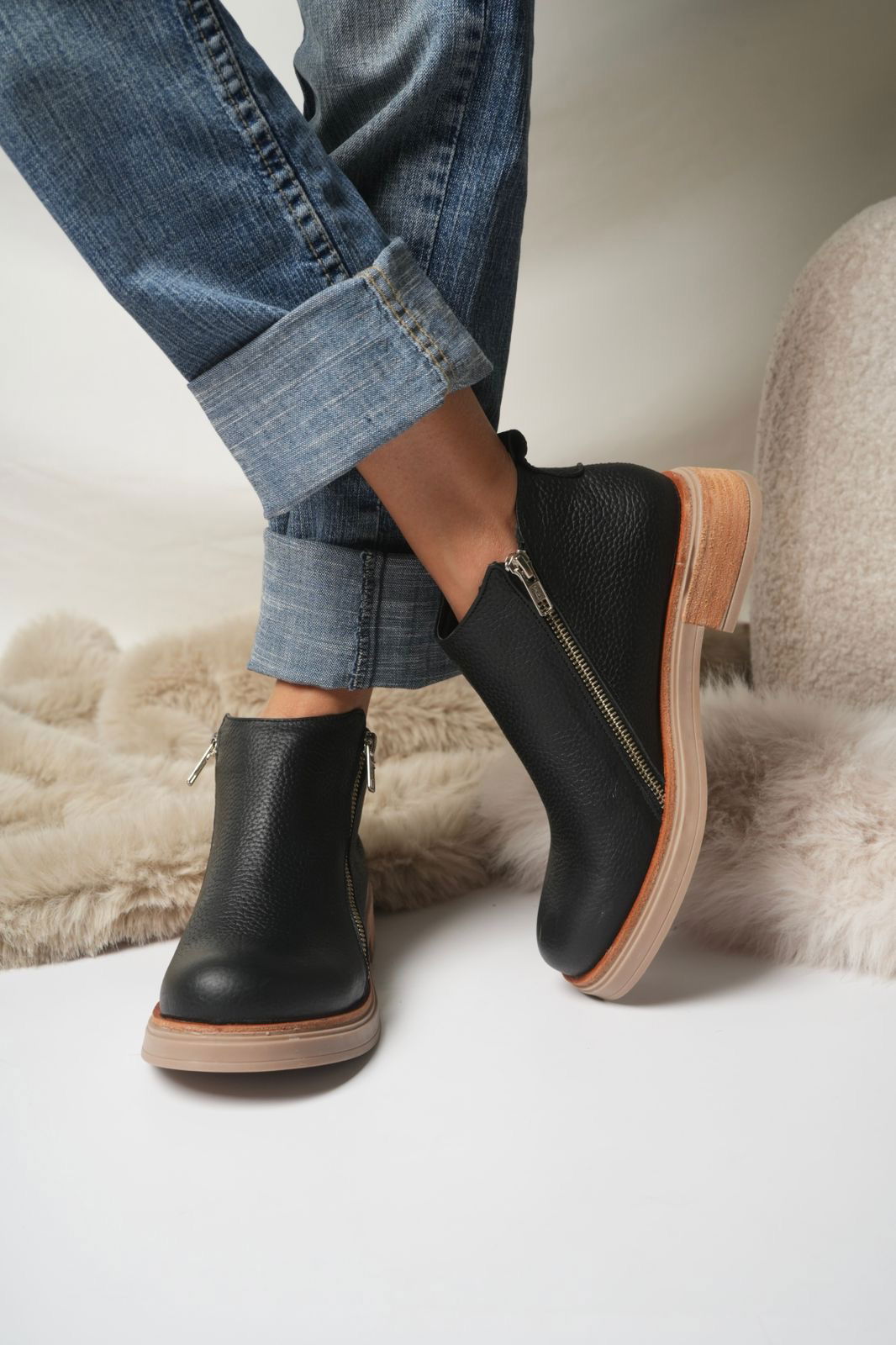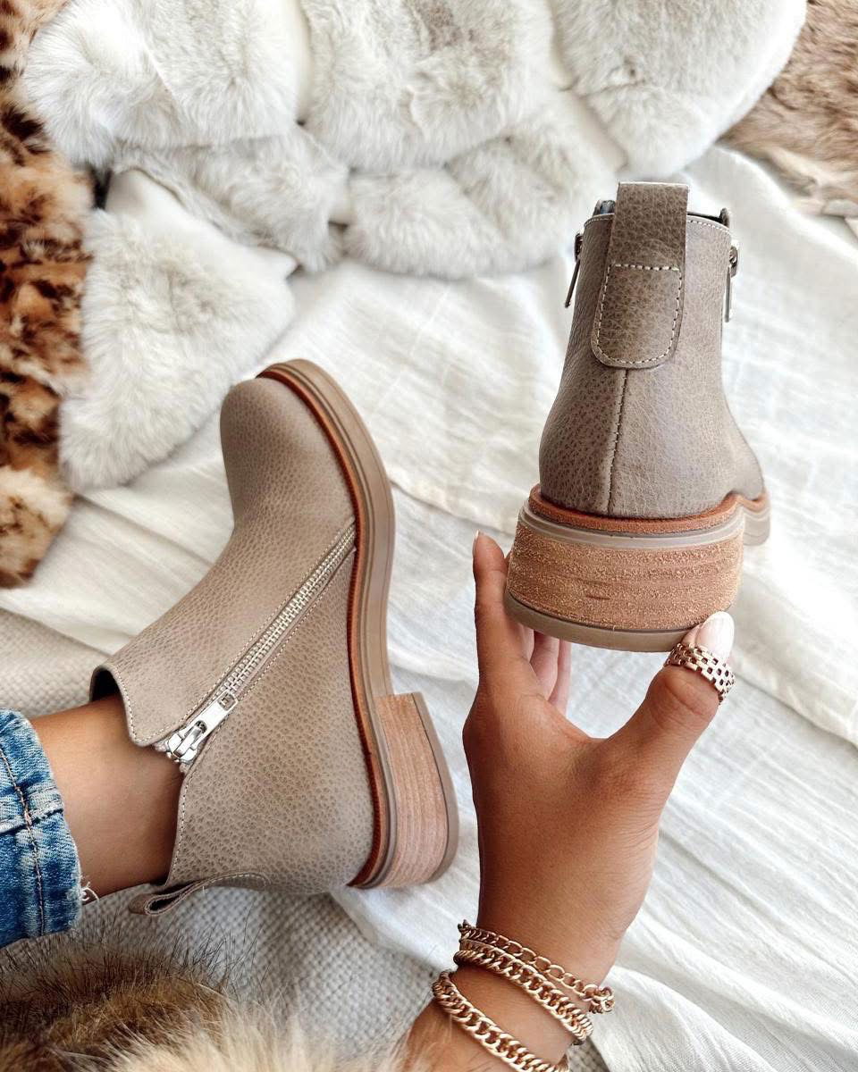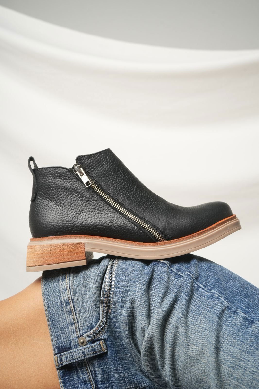 Botinetas JAZMIN de cuero con doble cierre lateral, pensadas para combinar estilo y comodidad en el uso diario. Su base de goma antideslizante brinda mayor seguridad y durabilidad. Un clásico infaltable que se adapta a cualquier look.