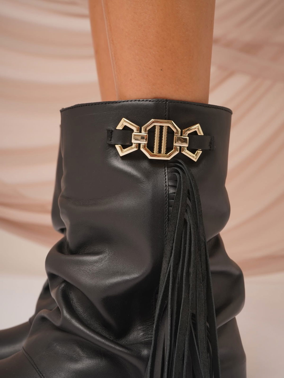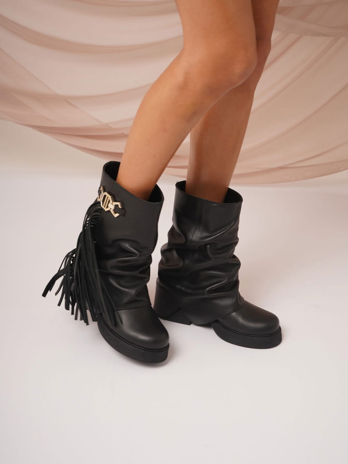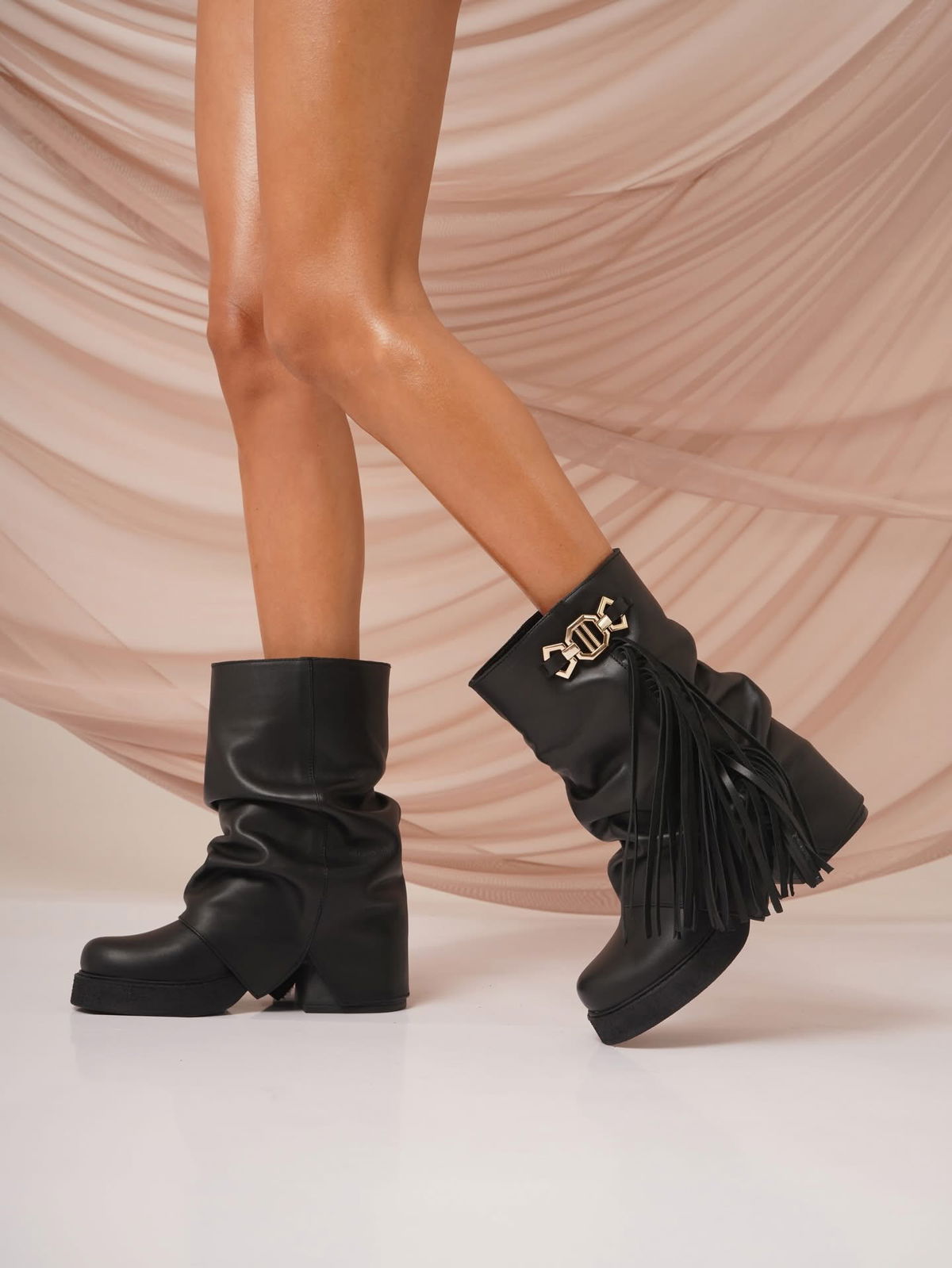 El complemento estrella de la temporada llegó para elevar cualquier look. Nuestros borcegos combinan flecos gamuzados que aportan movimiento y carácter, una hebilla protagonista que suma personalidad y la nobleza del cuero faldón , sinónimo de calidad y durabilidad.taco 5 cm plataforma 2 cm ..suela antodeslizable.