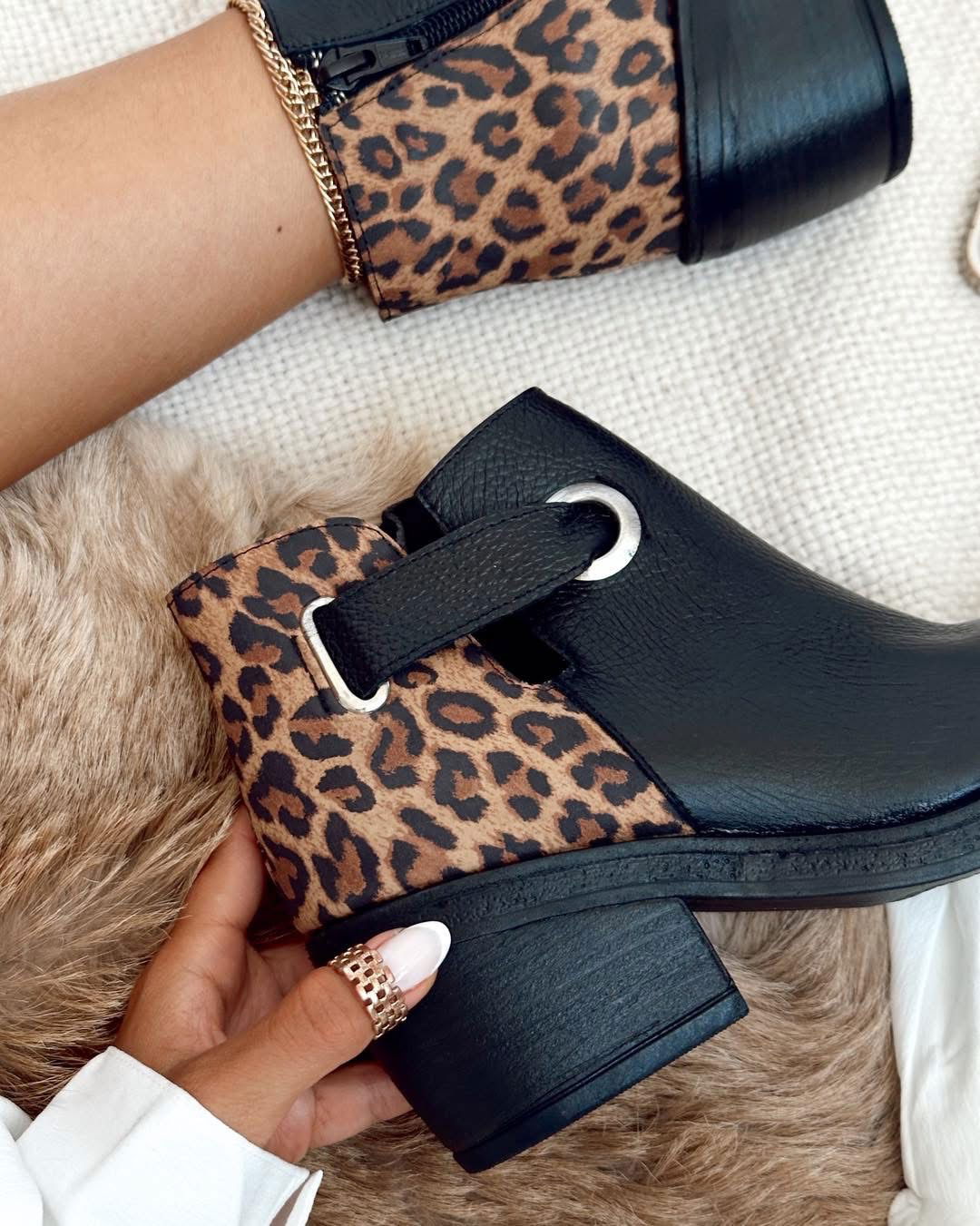 Cuenta con cierre lateral que facilita el calce y un detalle de enganche decorativo en el costado que suma diseño y personalidad.