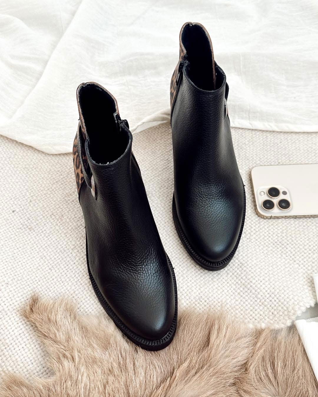 Bota de cuero con base de goma, ideal para el uso diario.