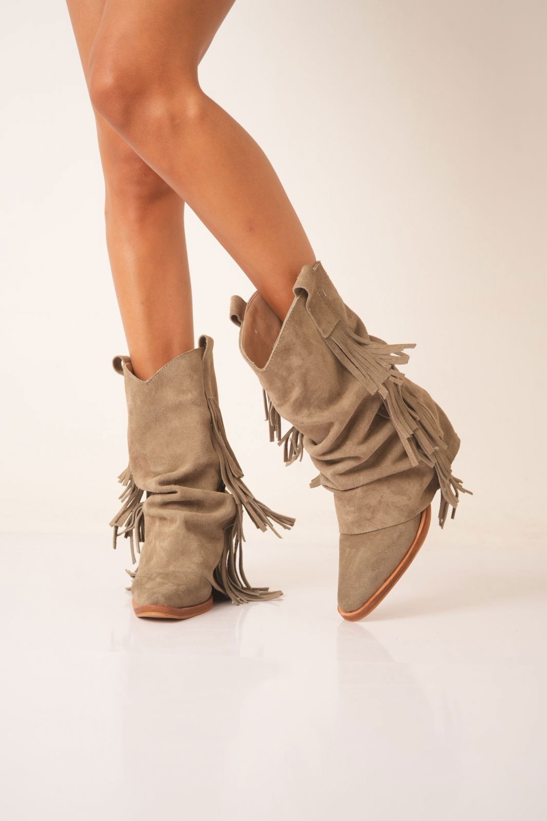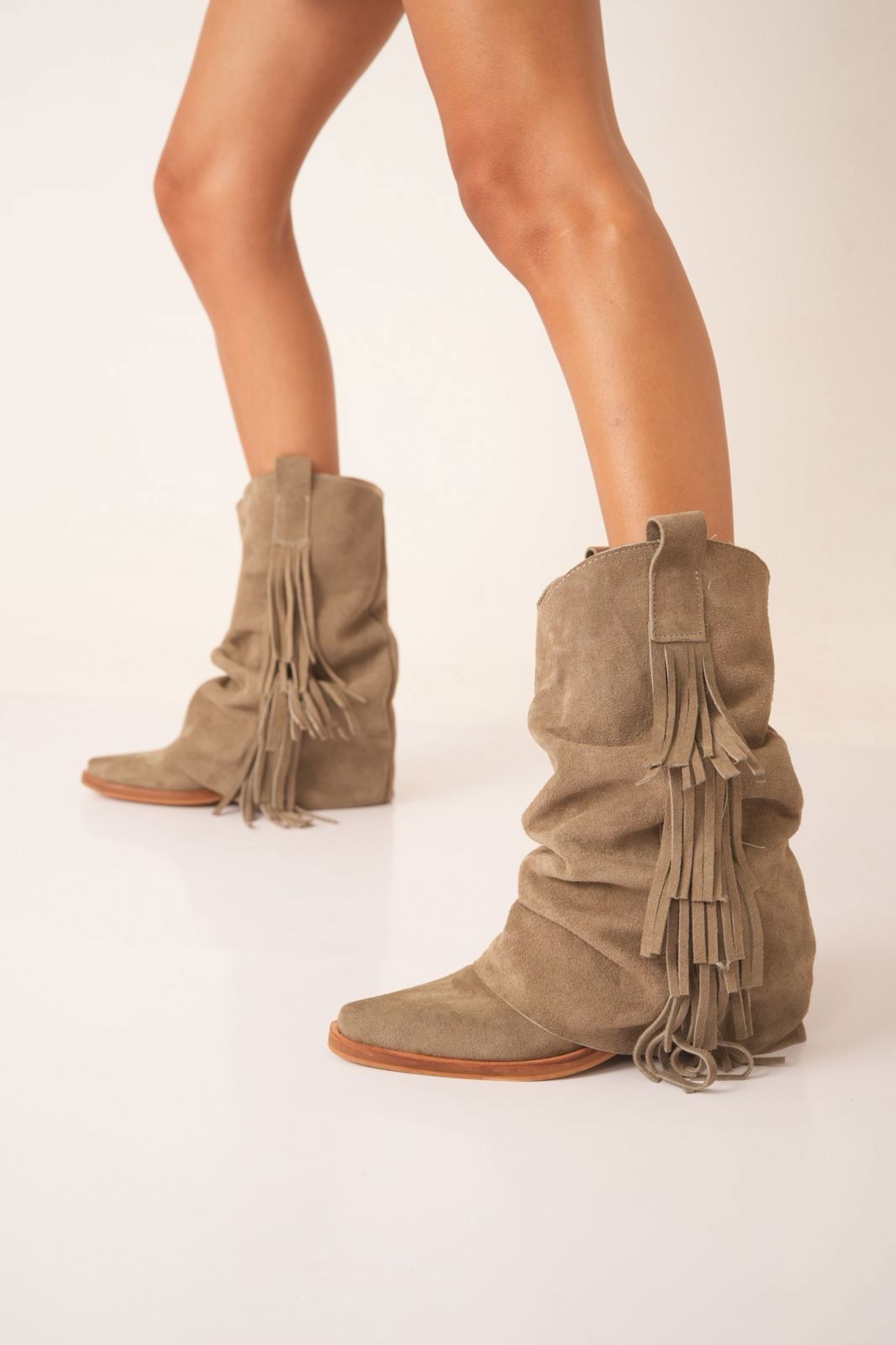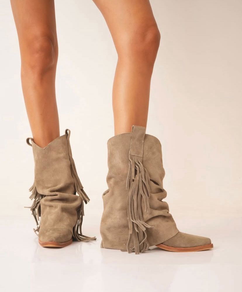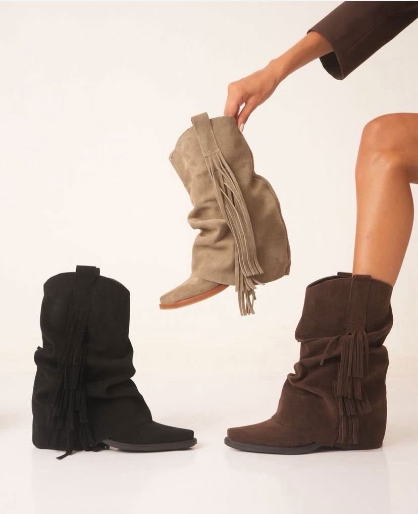 Confeccionadas en cuero gamuzado de alta calidad, se destacan por sus detalles de flecos, que aportan movimiento, estilo y ese toque boho que se viene con todo.