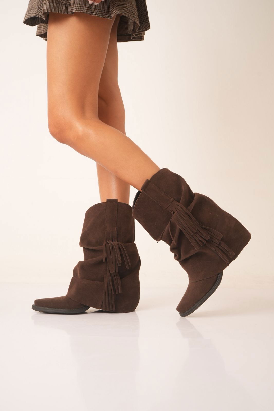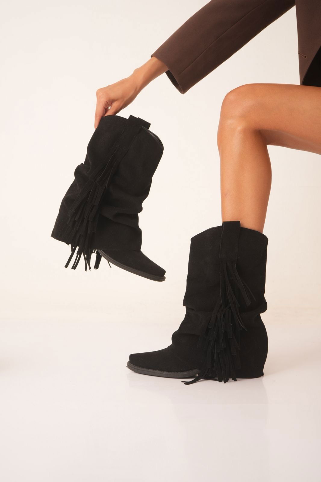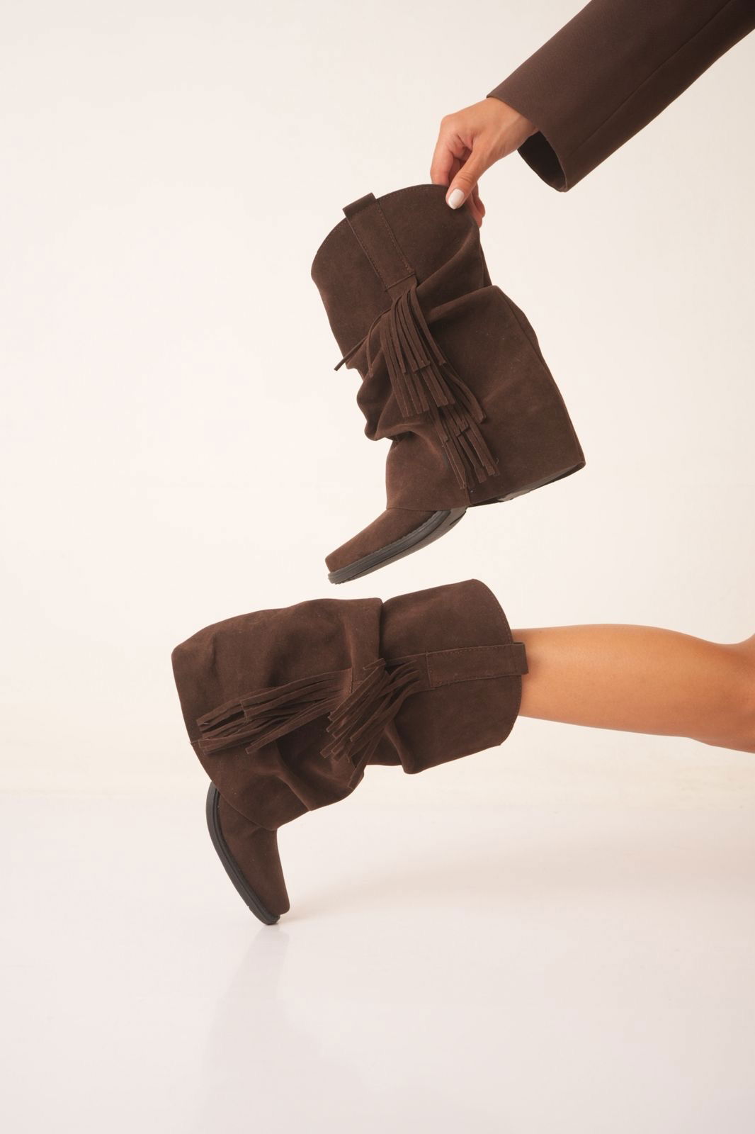 Confeccionadas en cuero gamuzado de alta calidad, se destacan por sus detalles de flecos, que aportan movimiento, estilo y ese toque boho que se viene con todo.