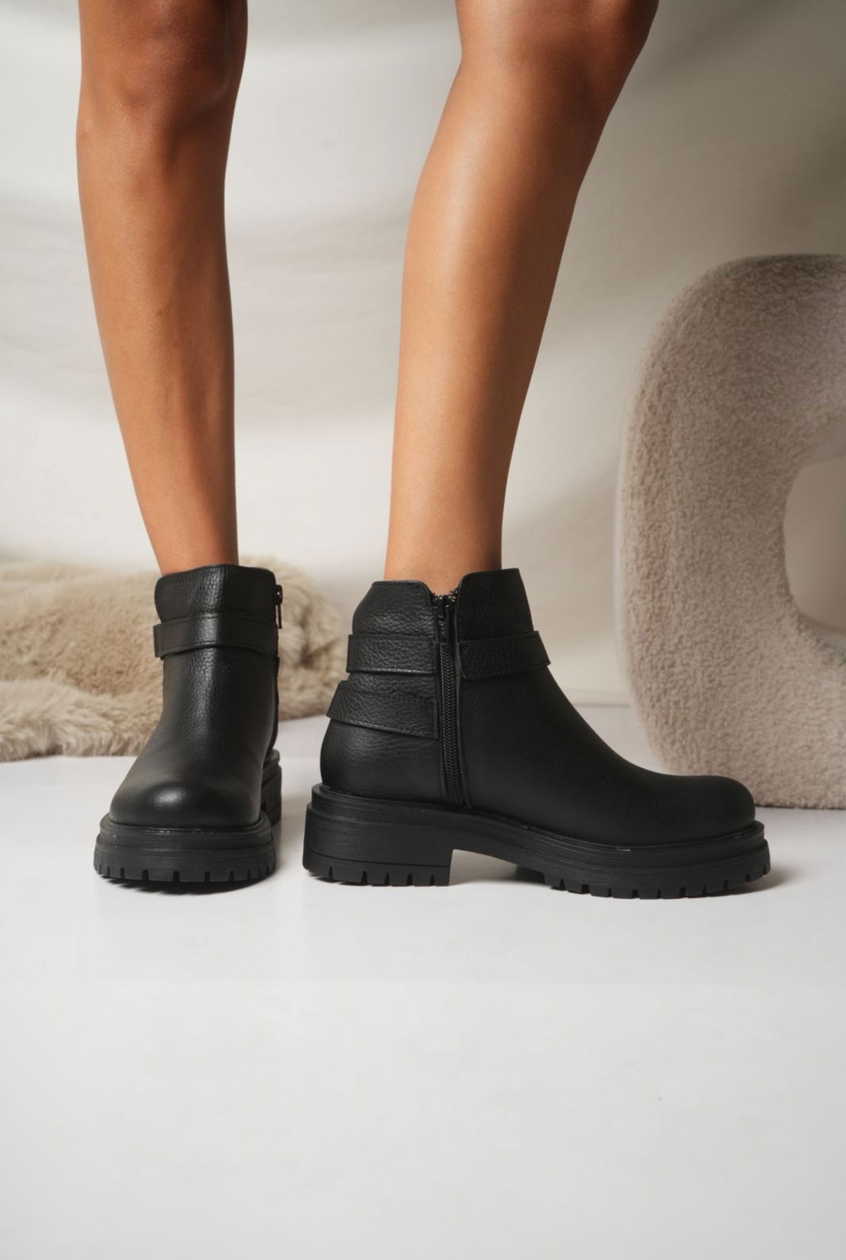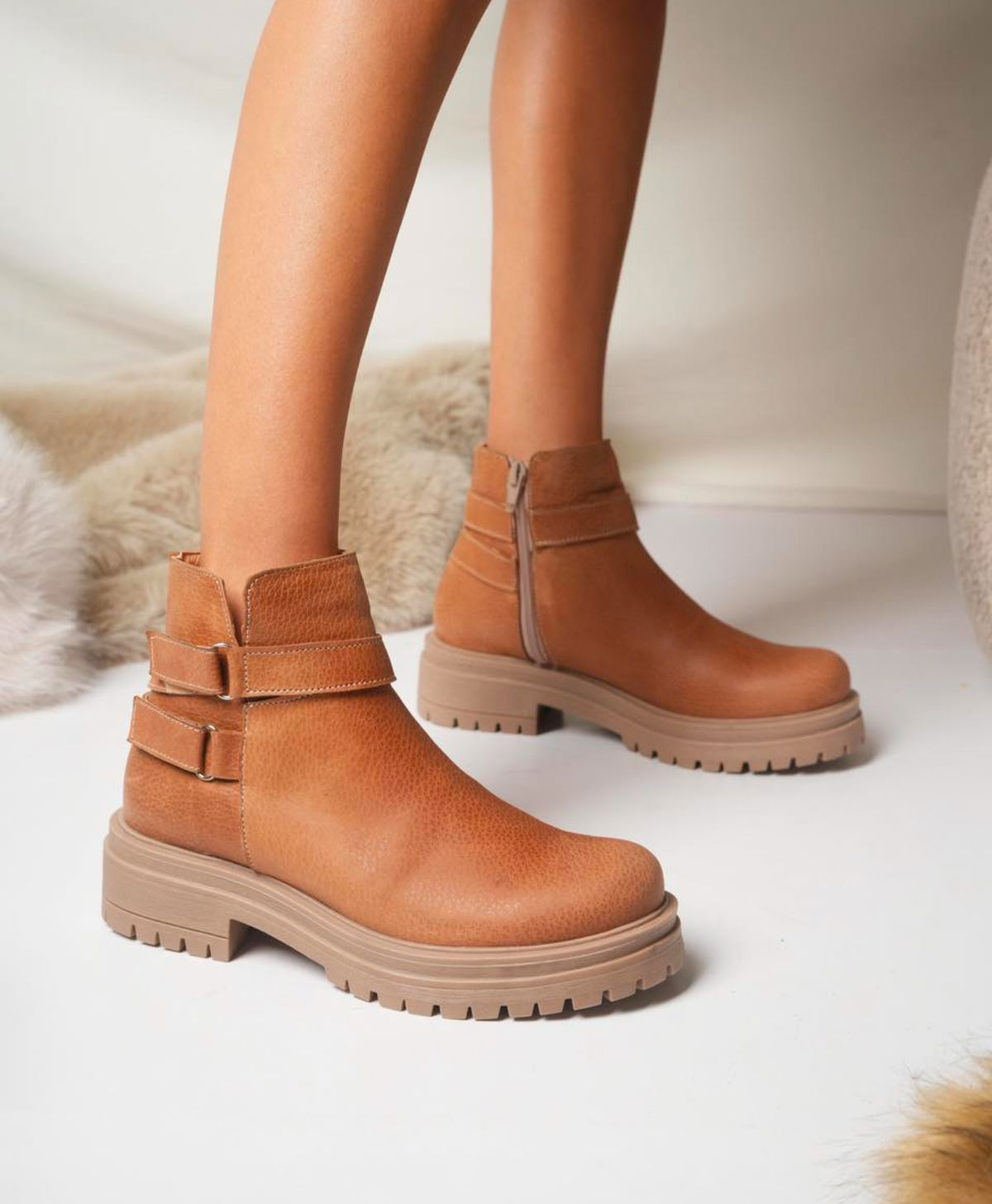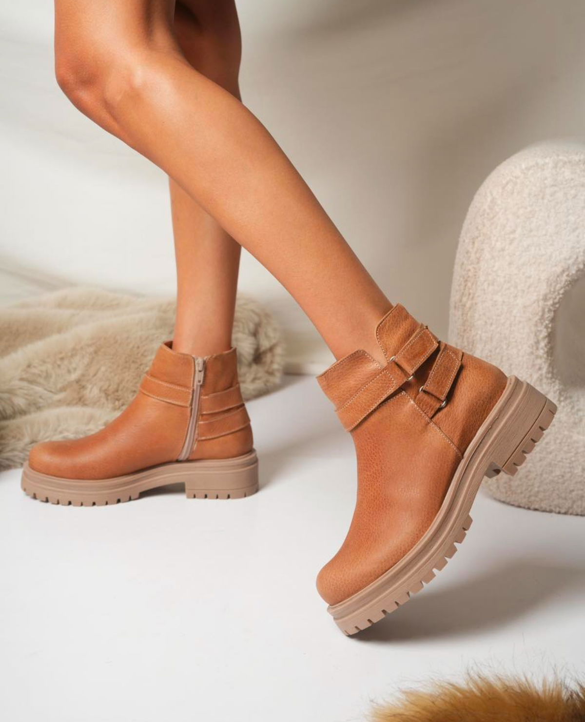 Botinetas cuero con cierre y ajuste adicional base de goma antideslizante