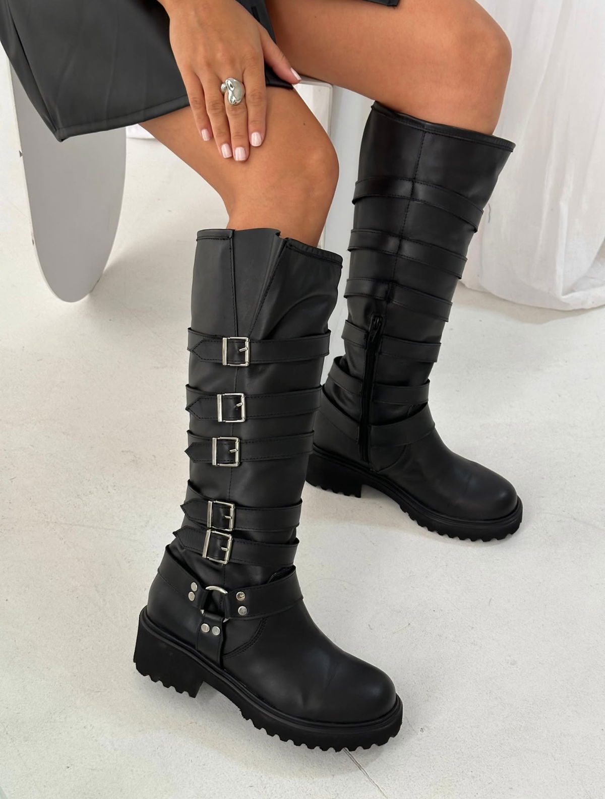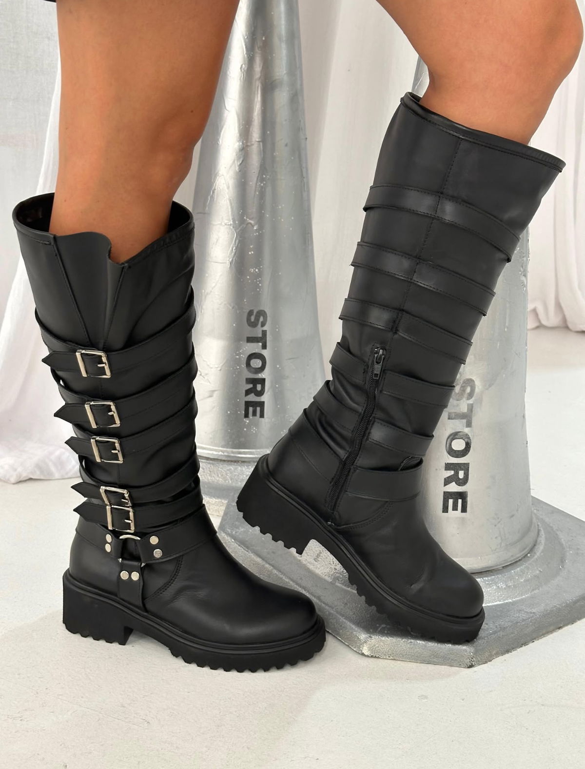 Botas con varias hebillas regulables cierre lateral base de goma taco de 5 cm del 35 al 40