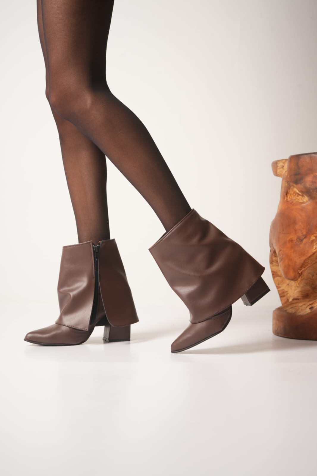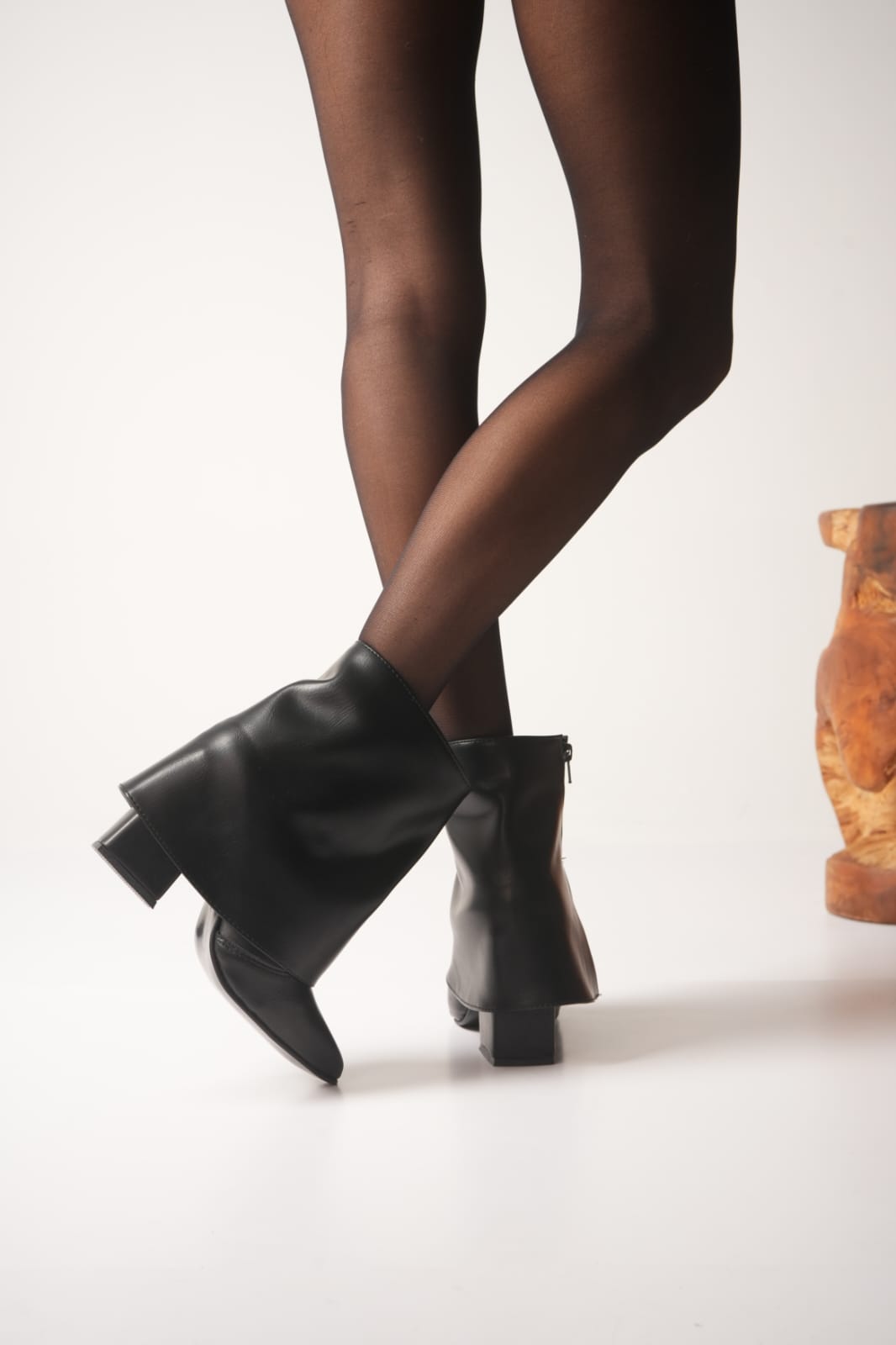 Botas cortas con faldón cierre lateral taco de 6 cm material de eco Cuero vienen en tres colores negro blanco y chocolate del 36 al 40
