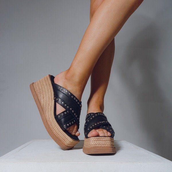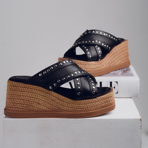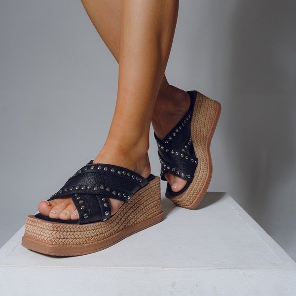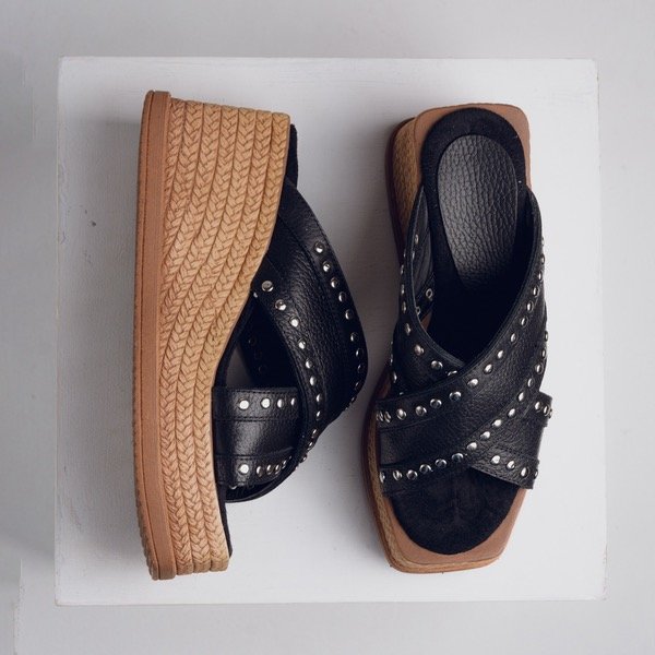 Suecos cuero detalle de tachas base senil yute talle 35 al 40